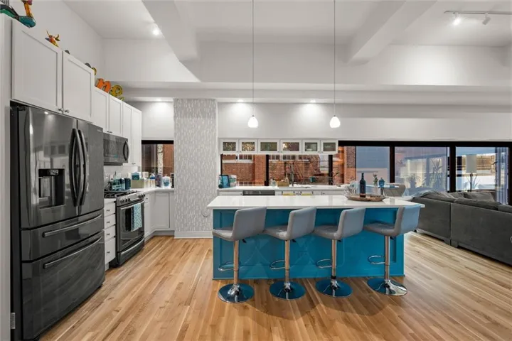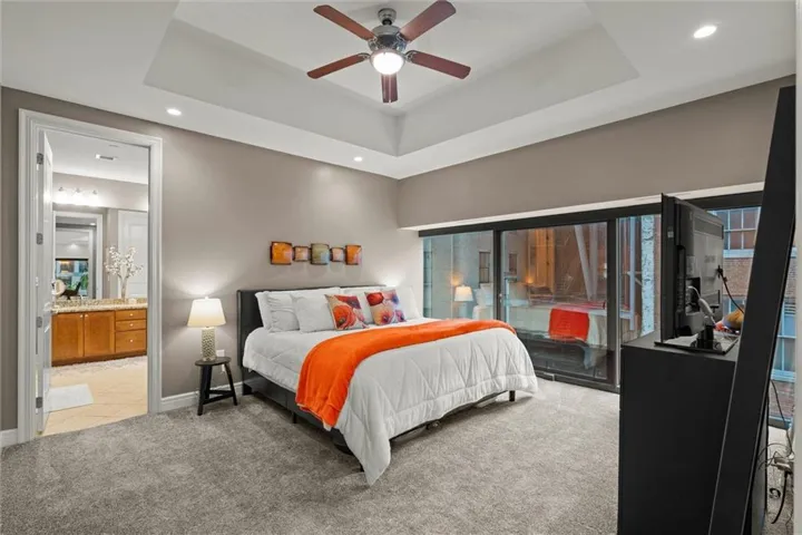 +"PublicRemarks": "Experience elegant city living in this spacious condominium located in the historic Greenlease Cadillac building. The open floor plan providing one level living is filled with natural light, creating a warm and inviting atmosphere throughout. The kitchen features a large island with seating, tall cabinets that extend to the ceiling for extra storage, gas cooktop and stainless-steel appliances that stay with the unit. The living room offers timeless character with its gas fireplace, crown moldings and tall ceilings. It opens to an private covered patio—perfect for relaxing, entertaining or gardening. A separate dining area provides additional space for gatherings. The spacious primary suite accommodates a sitting area and home office. The luxurious bath includes classic subway tile, a jetted tub, and a separate walk-in shower. The customized walk-in closet offers excellent storage and washer/dryer. The second non-conforming bedroom, den, or office is conveniently located off the beautiful entry hall. Additional highlights include high ceilings, crown moldings, and hardwood floors throughout. There is a storage unit on the lobby level. Assigned garage parking included in the HOA. Currently there is a 50% tax abatement. Enjoy the best of Union Hill—just steps from restaurants, coffee shops, bars, and shopping. The nearby streetcar provides easy and convenient transportation. Besides a full time residence this condominium is perfect for a second home or presence in Kansas City for out-of-towners."