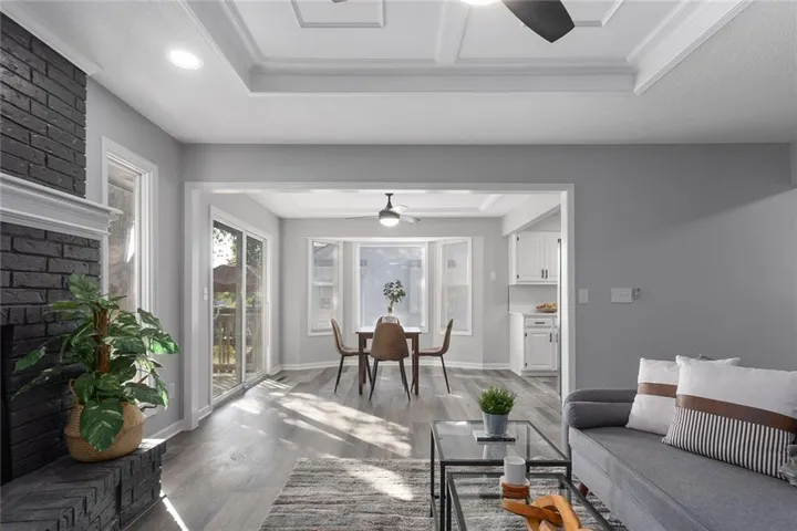 +"PublicRemarks": "Discover your perfect home in central Lee's Summit! This adorable, totally remodeled 4-bedroom, 3-bath residence is move-in ready and ideally situated near shopping, highways, and dining. Enjoy the perfect blend of traditional and modern touches, with abundant natural light flowing through every room. The large open living room features a stunning brick-trimmed fireplace, while the dining area seamlessly connects to an oversized patio—ideal for entertaining. The kitchen boasts a chic modern backsplash and freshly painted cabinets. Retreat to the spacious master bedroom, and enjoy all-new LVP flooring throughout. The refinished basement includes a full bath, an additional bedroom, and a roomy family room. Plus, the large fenced backyard offers a private oasis. Don’t miss this incredible opportunity!"