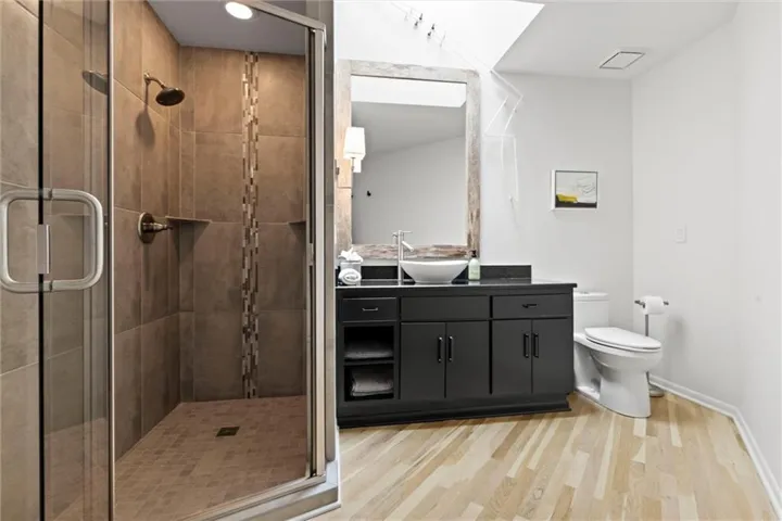 The main living area feels bright and open, perfect for everyday living or hosting friends. The updated kitchen features gorgeous quartz countertops, generous prep space, and plenty of storage, while the adjoining dining area overlooks the deck and backyard. All three upstairs bedrooms are spacious, with the primary suite offering its own private bath and two separate closets.\r\n