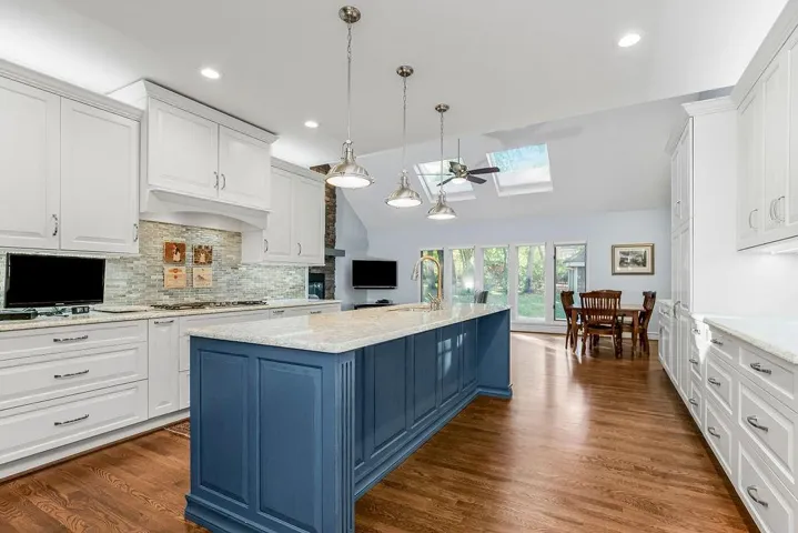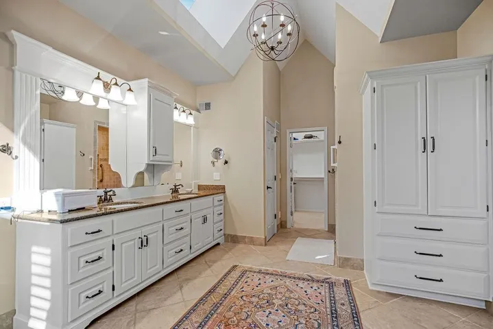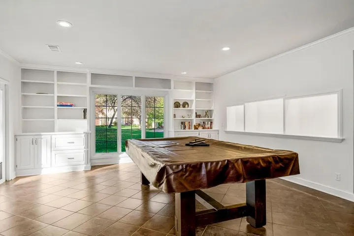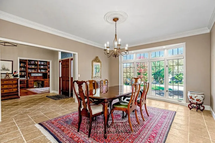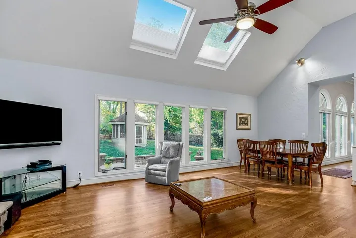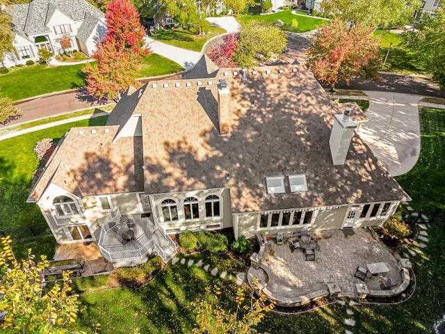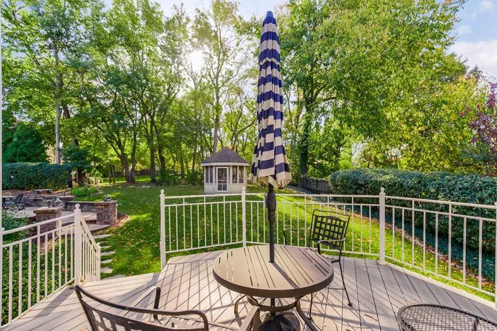 +"PublicRemarks": "This stunning 1.5-story home in the prestigious Deer Creek neighborhood of Overland Park embodies luxury and charm. Nestled on a corner lot with exceptional curb appeal, stone accents, and lush landscaping with vibrant trees, it offers a striking first impression. A grand entry opens to tall, vaulted ceilings, leading to a formal dining room with a bay window to the left, and a spacious office featuring a large built-in desk, bookcase, and picture windows. The main level includes an elegant sitting room with a cozy fireplace and expansive windows overlooking the scenic backyard. Nearby, a warm hearth room awaits with its own fireplace, vaulted ceilings, skylights, hardwood floors, and a stunning wall of windows. The chef’s kitchen boasts an island, butler sink, granite countertops, double oven, gas cooktop, and stainless steel appliances—ideal for intimate gatherings or grand entertaining. A bright 4-seasons sunroom with a built-in desk opens to the backyard, while the main-level master suite is a true retreat with plush carpet, built-ins, plantation shutters, and a private martini deck. Its luxurious bath includes a jetted tub, double vanity, walk-in shower, and spacious walk-in closet. Upstairs, three large bedrooms offer ample space, with two sharing a Jack-and-Jill bath. A walk-in cedar closet and a third full bath complete the upper level. The finished walk-out basement includes a fifth bedroom and full bath, billiard area, built-ins, a fireplace, and a wet bar with a charming diner booth, plus abundant storage space. Outside, the shaded backyard features a spacious patio for gatherings and a picturesque gazebo. This highly desirable neighborhood offers a pool and tennis club and easy access to walking trails, dining, and shopping within the Blue Valley school district."