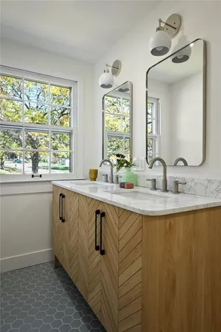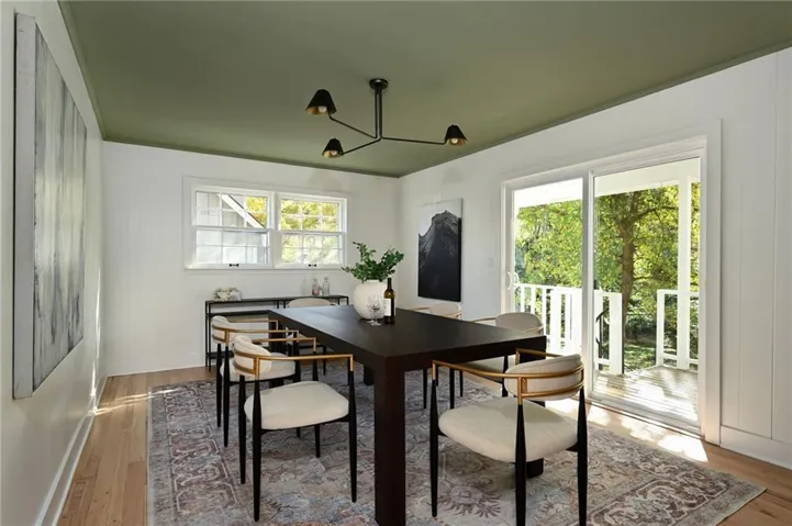 +"PublicRemarks": "All redone 1.5 story home in beautiful Briarford Place neighborhood! This home, professionally remodeled by interior designer, features 2 bedrooms on the main level. Large newly added Primary Bath with a double white oak vanity and XL shower and custom built dresser. Main level has gorgeous natural oak flooring and a large formal dining space. Brand new custom cabinet kitchen with stainless steel appliances and zellige tile. You will love all of the higher end lighting by Mitzi & Crate & Barrell. 2 bedrooms upstairs with oversized closets, new oak flooring in the hall, new carpeting and double vanity brand new bathroom. Walkout lower level has brand new carpet with a large area perfect for movie nights, half bath, redone and bright laundry room, and a wet bar for entertaining. New electrical panel with 200A service. Sit in front of the large picture window with great natural light on the main level and watch the deer pass through the creek and wooded greenspace. A beautiful quiet and private backyard to enjoy!"