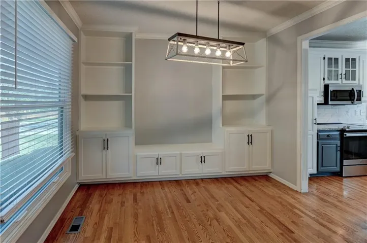 room with built-in bench and bookcases. 4 bedrooms, all with walk-in closets.\r\n