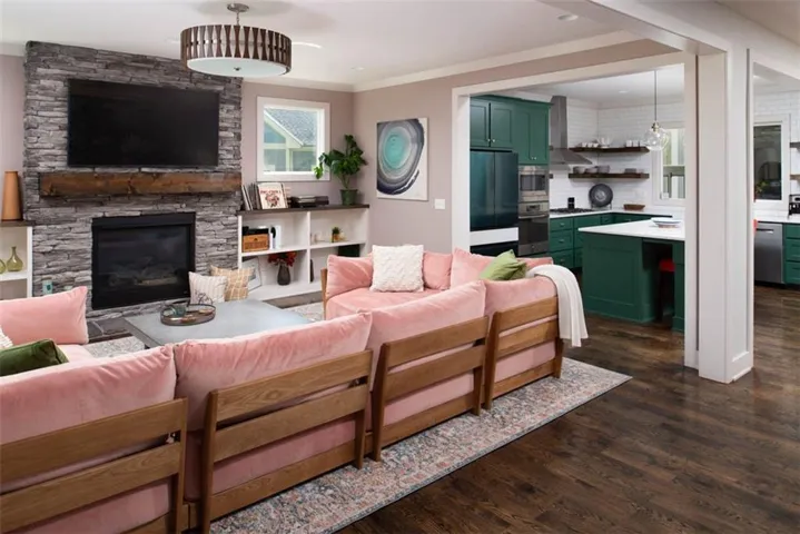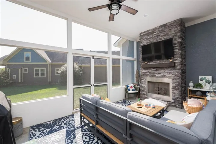 +"PublicRemarks": "They say it takes a village and Shoal Creek Valley The Village is the one you want to be in! This home is gorgeous and has been impeccably maintained, with style to spare and space for everyone! The great room welcomes you with hardwood floors, a gas fireplace, and built-ins. A beautiful eat-in kitchen has quartz counters, stainless appliances, a big island, and a roomy walk-in pantry. Off of the kitchen is a super-comfortable screened porch with gas fireplace where you will love to relax in this nicely established neighborhood (with two pools, playground, water park, two clubhouses!). Upstairs you'll find three spacious bedrooms, including a terrific master suite with a big walk-in closet and spa-like master bathroom (double quartz vanity, large double shower, and soaking tub). Upstairs you will ALSO find an amazing partially covered rooftop deck! Expansive family room in basement features its own full bathroom and is a terrific flex space for hosting family and friends or use as a fourth bedroom (as currently shown). Ample storage space in basement as well and a tankless hot water heater. This house is SUPER convenient to everything KC has to offer, with great proximity to shopping and dining, and is located in the highly-rated Liberty School District. It has tons of fun updates that you won't find elsewhere, including a box beam ceiling in the master, an oversized three car garage leading to a convenient drop zone on your way in, smart locks/garage doors that you can open and close from your phone, beautiful on trend light fixtures everywhere you look.....and..... EVERY bathroom features a lighted/heated toilet seat too!"