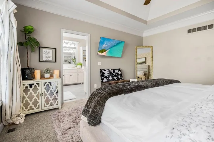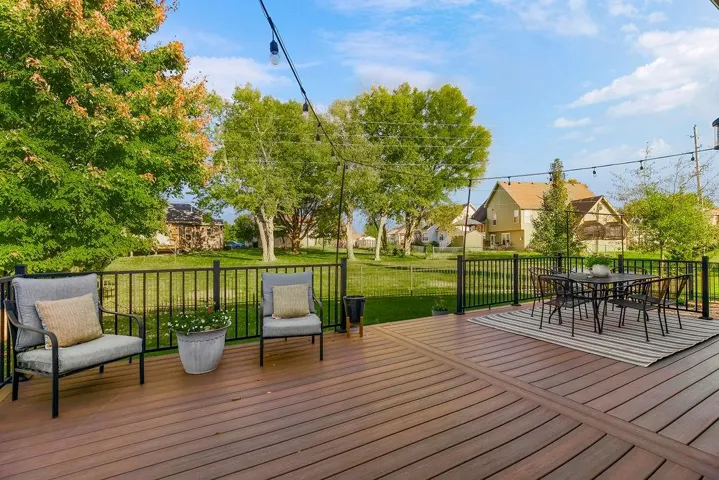 +"PublicRemarks": "Experience the pinnacle of stylish living in this stunning home. All you have dreamed of is here. High ceilings through the main floor which is drenched in natural light from wall-to-wall windows, FP with a gorgeous mantle with upgraded trim package, wrought-iron railings on the staircase, and soaring ceilings. The kitchen boasts a dynamic tiled backsplash, corner sink, granite countertops, breakfast bar with seating and pendant lighting, pantry and stainless steel appliances. The main level master suite serves as a spacious retreat, complete with a generous master bath and walk-in closet with built-ins. The two additional bedrooms and a full bath provide plenty of room and are a great feature in this reverse. The entry is tiled and features wainscot. The fully finished basement offers a large family room, three more bedrooms, two full baths, and plenty of storage space. Iron fencing and a brand-new composite deck accent this large, beautiful lot. And the roof is just over a year old. Take advantage of the HOA amenities, including a clubhouse, exercise room, golf, swimming pool, tennis courts, and trails. This dream home is waiting for its new owner...."
