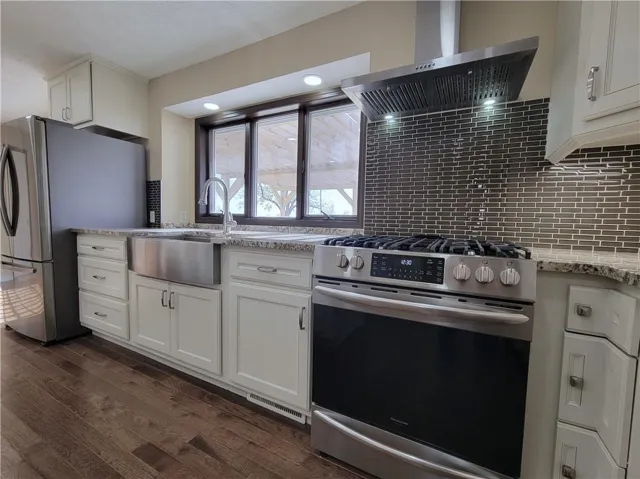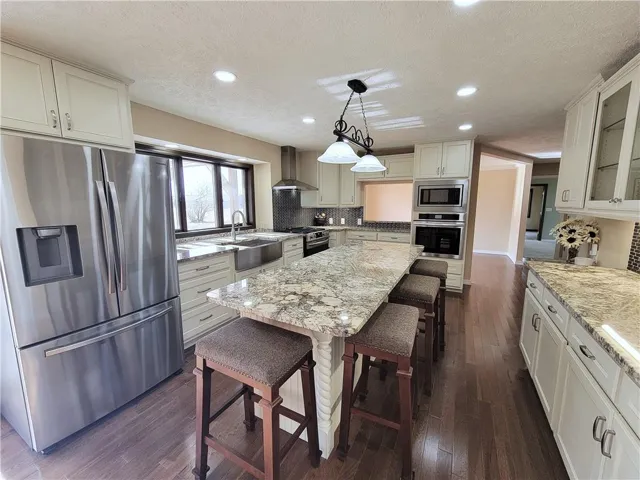Step into this stunning 1.5-story residence and be greeted by a graceful entryway with a curved staircase, setting the tone for the charm within. Spanning over 3,600 sq. ft., the home boasts luxurious amenities throughout. The spacious living area features a vaulted ceiling with solid wood accents and a stacked-stone, gas fireplace. You can flow seamlessly into the custom kitchen, equipped with new appliances and elegant granite countertops. It is truly a Chef's dream kitchen! Further exploration reveals the formal dining room, enhanced by a charming tin-panel ceiling and a pass-thru window to the kitchen that adds character to your gatherings.\r\n