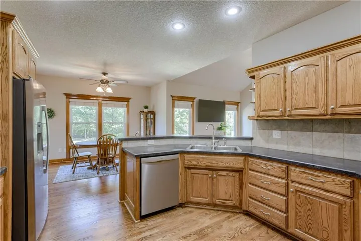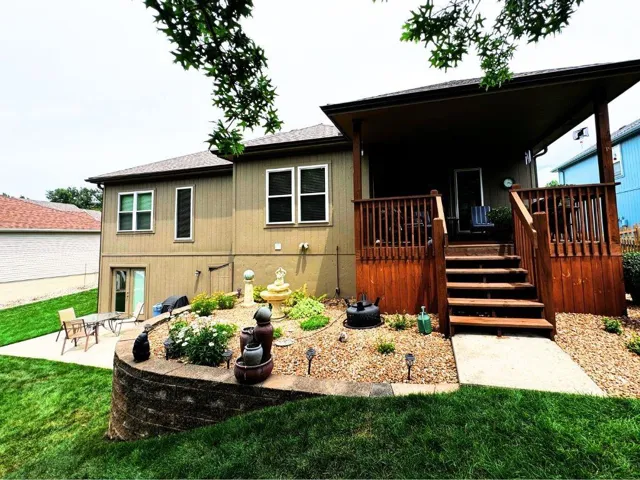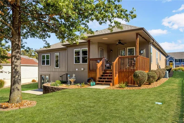 +"PublicRemarks": "Back on the market - NO FAULT OF THE SELLER - **Another unique and rare find! **** Cul-de-sac EXTRA CLEAN Ranch home w/ Finished Walkout Basement + PRIVATE BACKYARD! 3 bed/2.5 bath. Nearly 3000 sq ft. Approx $85k in updates! 3 Bdrm + plenty of space for another room in the basement. EXTRA Large Primary Room with AMAZING CLOSET + access to covered porch w/ ceiling fan & shade. Dream Outdoor Space is PRIVATE. Flat, tree-lined, HUGE yard, Spacious covered, maintenance-free concrete patio with access from the walkout basement. Home built with great bones and provides the perfect space for entertaining or relaxing. All one-level living includes 3 bedrooms, 2 full baths + big living space + eat-in kitchen + laundry. Walk out basement has PLENTY of space to do what you want + half bath + storage + storm shelter + DREAM WORKSHOP with French Doors to access the outside patio. Did we mention the LOCATION?! Located near the 19th Street ramp, 33 Hwy, and Jesse James Road – easy access to everything Kearney! *MUST SEE THIS ONE!***"