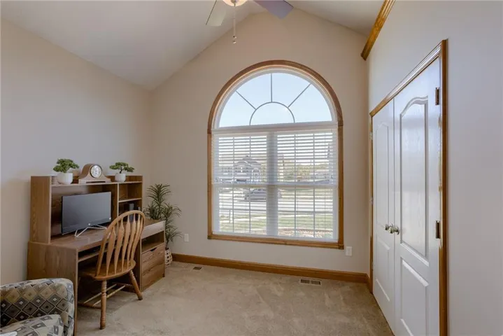 "LongDescription" => "Unfurnished bedroom featuring carpet flooring, a closet, a textured ceiling, and a ceiling fan"