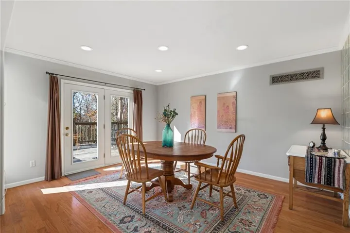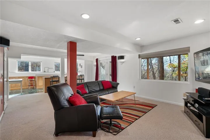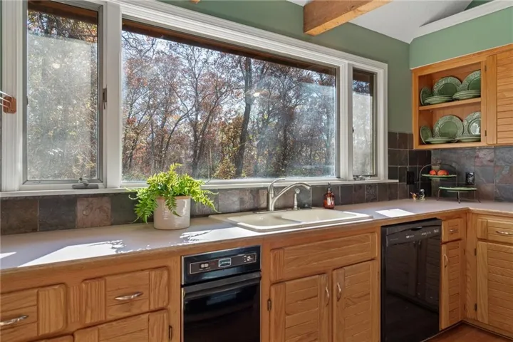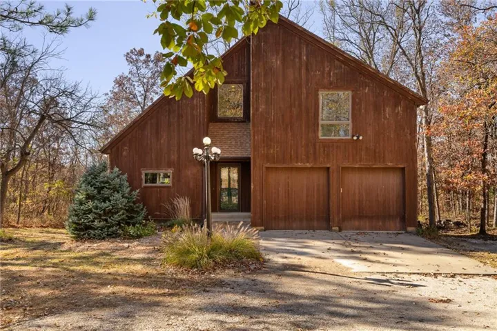 +"PublicRemarks": "Once in a lifetime opportunity for 1.45 acres nestled in the trees and rolling hills of DeSoto. Beautiful treed lot with a winding driveway leads to this modern 4 bedroom, 4 bath home with rustic cedar exterior. Inside it's open and airy with so much natural light and contemporary Scandanavian influence. The Great Room features soaring ceilings with a wood ceiling treatment and a statement fireplace. Great Kitchen with island, tons of cabinet and countertop space is adjacent to the dining area - a perfect open concept for entertaining and hosting. Main level includes a secondary bedroom and full bath. Upstairs, features the Primary Suite and a secondary bedroom with hallway built-ins. The large Primary Suite has a fantastic view and a vaulted ceiling with wood ceiling accents, bathroom with double vanity, walk in closet. Great sized secondary bedroom has amazing closet space and an updated private bathroom. The 4th bedroom and bathroom are in the finished walkout basement that includes a Rec Room space and bar area - the ultimate hangout spot. Large 12x24 back deck is the perfect perch to check out all the local wildlife (deer, turkey, foxes, etc.) and enjoy every season. Backyard shed offers extra outdoor storage. Newer HVAC. In-ground utilities. Super private lot just minutes from it all. Top rated DeSoto Schools. Hurry, this is one you won't want to miss!!"