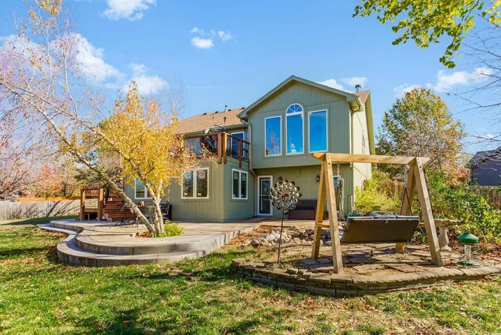 "LongDescription" => "Rear view of house with a patio and a ceiling fan"