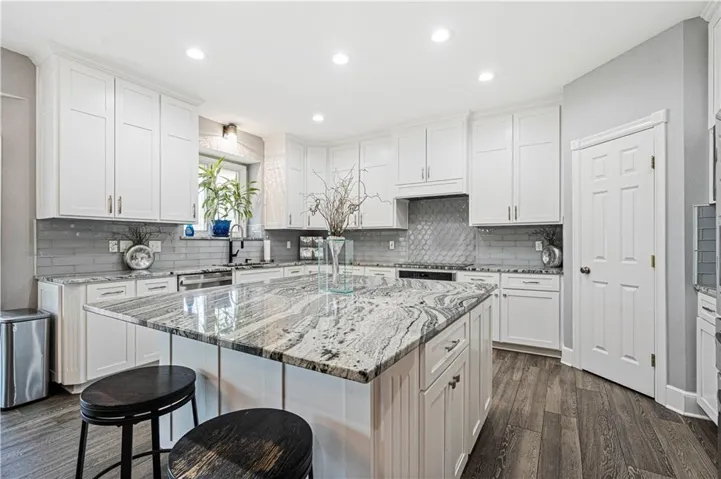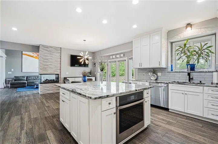 Welcome to this stunning 6-bedroom, 4.1-bathroom home that effortlessly combines elegance and family-friendly design. Step inside to a grand foyer with soaring ceilings and beautiful flooring that flows throughout. The main level features a sophisticated formal dining room, a cozy living room with a contemporary double-sided fireplace, and a wall of windows framing beautiful views of the backyard. The gourmet kitchen is a chef’s dream, complete with granite countertops, a large island with seating, stainless steel appliances, a stylish backsplash, and an expansive walk-in pantry. Adjacent is a bright breakfast nook that opens to the backyard.\r\n