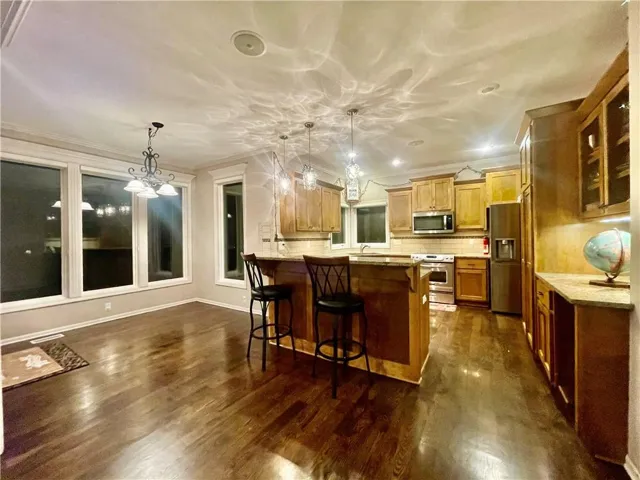 Your new abode has a wonderful kitchen with granite countertops and hardwood floors throughout main level. The primary suite has a sitting room, martini deck and see-thru fireplace. The finished basement includes a bar, media room and 3/4 bath. Large garage, big enough enough to store large vehicles, and plenty of storage. Bring your Buyer(s) they will not be disappointed, this neighborhood has fantastic amenities, walk the kids to the grade school. This lovely home is waiting for you to claim it as your own! Basement is finished but there is no tax records showing actual sf. Please confirm measurements.