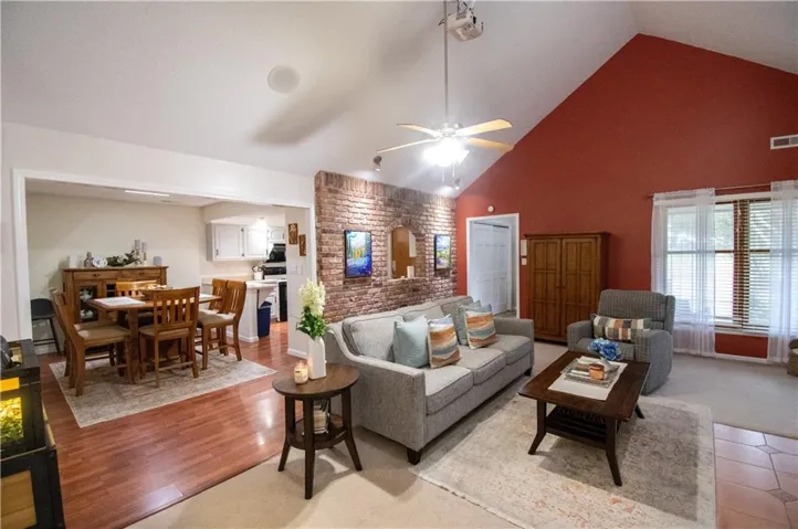 +"PublicRemarks": "Brand new roof! This is your stunning 3-bedroom, 3-bathroom property is not just a house a it's a lifestyle upgrade. Step into a move in ready home with a spacious living room, where vaulted ceilings and an abundance of natural light highlight the gorgeous brick fireplace. You'll love the brand-new built-in retractable projector, perfect for movie nights, seamlessly integrated above the fireplace. The kitchen is a showstopper with its beautiful arched brick detailing, adding a touch of timeless elegance. This home is immaculately clean and has been exceptionally well-maintained, ensuring a move-in-ready experience. Convenience is key, with the primary bedroom and laundry both located on the main level. The expansive deck, accessible from the living room and primary bedroom, offers a perfect space for outdoor entertaining or simply relaxing in your private oasis. Safety and peace of mind are provided by the storm shelter located in the garage, making this home a solid choice for all seasons. Don't miss out on this gem! Schedule your visit today!"