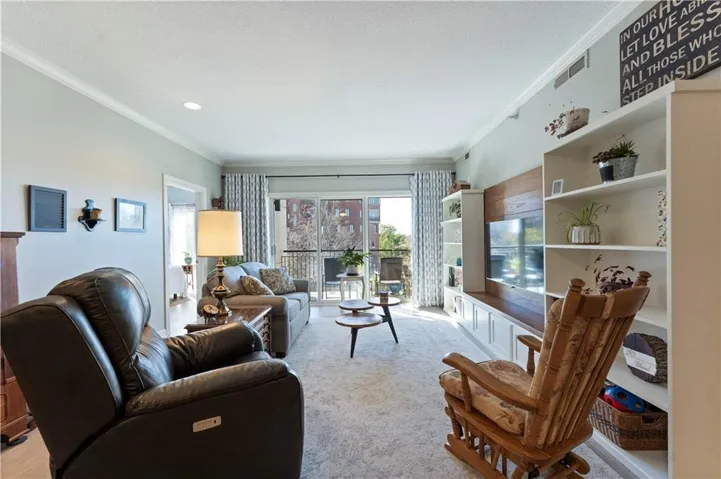 +"PublicRemarks": "Experience elegant city living in this spacious condominium located in the historic Greenlease Cadillac building. The open floor plan providing one level living is filled with natural light, creating a warm and inviting atmosphere throughout. The kitchen features a large island with seating, tall cabinets that extend to the ceiling for extra storage, gas cooktop and stainless-steel appliances that stay with the unit. The living room offers timeless character with its gas fireplace, crown moldings and tall ceilings. It opens to an private covered patio—perfect for relaxing, entertaining or gardening. A separate dining area provides additional space for gatherings. The spacious primary suite accommodates a sitting area and home office. The luxurious bath includes classic subway tile, a jetted tub, and a separate walk-in shower. The customized walk-in closet offers excellent storage and washer/dryer. The second non-conforming bedroom, den, or office is conveniently located off the beautiful entry hall. Additional highlights include high ceilings, crown moldings, and hardwood floors throughout. There is a storage unit on the lobby level. Assigned garage parking included in the HOA. Currently there is a 50% tax abatement. Enjoy the best of Union Hill—just steps from restaurants, coffee shops, bars, and shopping. The nearby streetcar provides easy and convenient transportation. Besides a full time residence this condominium is perfect for a second home or presence in Kansas City for out-of-towners."