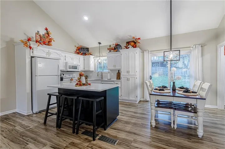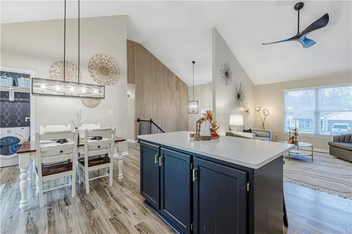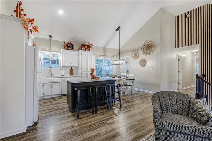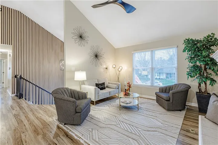 +"PublicRemarks": "This beautiful, move-in-ready, split-level home offers an open concept design with 3 spacious bedrooms and 2 bathrooms. The main level features a cozy living room with a fireplace, perfect for gatherings. The house includes vinyl plank flooring throughout, with carpeted bedrooms. A bright eat-in kitchen with quartz countertops opens up to a beautifully landscaped backyard, offering a peaceful outdoor retreat. The finished basement provides a second living area, adding valuable extra space for relaxation or entertainment. With large windows overlooking the well-maintained front yard, the living room is filled with natural light, making it a welcoming space. This home has so many upgrades and improvement and is ready for new owners. New roof and gutters, new AC unit, new water heater. All measurements are estimates and should be verified by buyer."