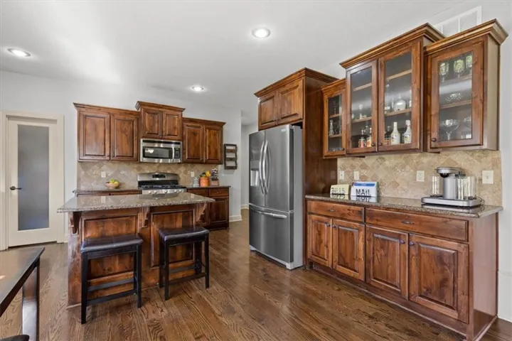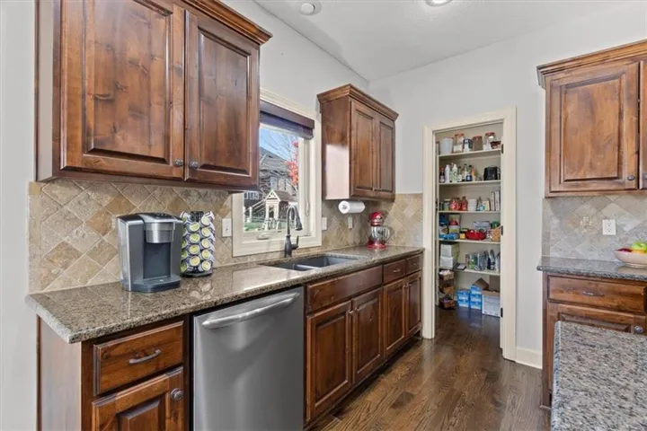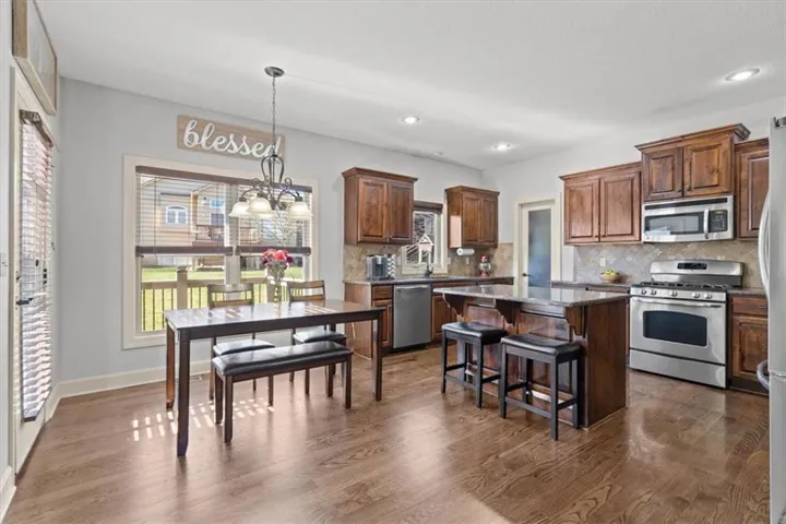 There is nothing better than living in a wonderful neighborhood in a fantastic location. You will find several schools, restaurants, and entertainment venues within walking distance. Located on a large, landscaped lot, this home offers a wonderfully unique floor plan. A large formal dining room and an open concept great room greet you as you enter the home. The great room is equipped with a fireplace and over-sized windows overlooking the backyard. Around the side staircase is the kitchen, which also includes a second dining area. Granite counters are lovely, and stained cabinets showcase the woodwork's beauty. The kitchen includes a walk-in pantry as well as an island. The half bath and landing area are at the door to the garage are conveniently located just beyond the kitchen. \r\n