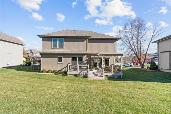 Upstairs are 4 bedrooms, each with bath access. The hall also has a useful built-in family desk area. The primary bedroom has windows to the backyard and is attached to the huge bathroom and laundry room. The bathroom has both a tiled shower and a whirlpool tub. The closet is impressive in size. Downstairs is perfect for guest quarters with a bedroom, full bathroom, rec. room and a wet bar. Both kids and adults will enjoy this area for a second living space. The back yard is enjoyable for entertaining with a large patio and pergola. Move right in and enjoy the holidays!