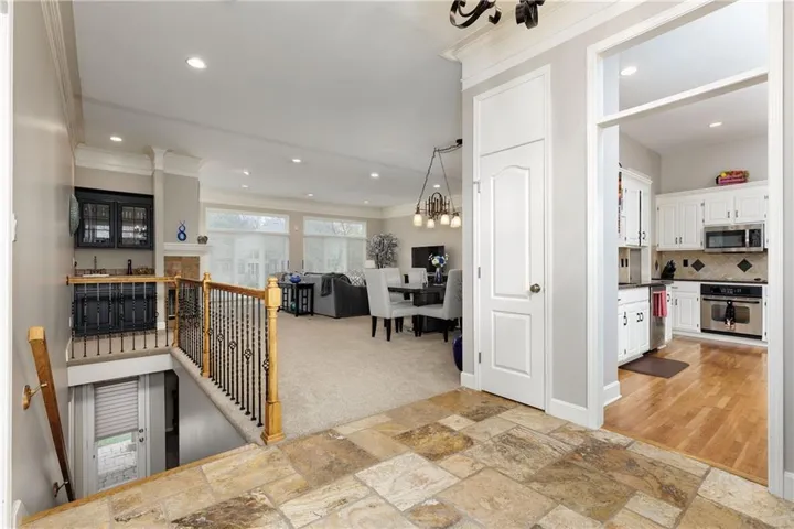 Beautiful update bathroom features marble vanities and a large walk-in closet. Main floor 2nd bedroom or office has high ceilings and a full bath.The finished walk-out lower-level features a huge 3rd bedroom, full bathroom, family room with a gas fireplace and game room with a beautiful wet bar and granite tops. Conveniently located between Town Center and Prairiefire.