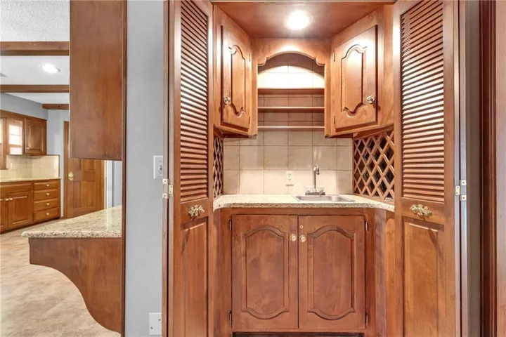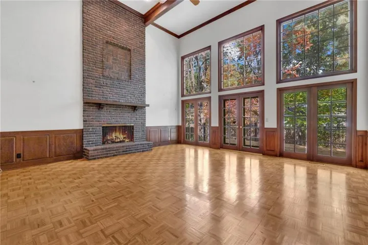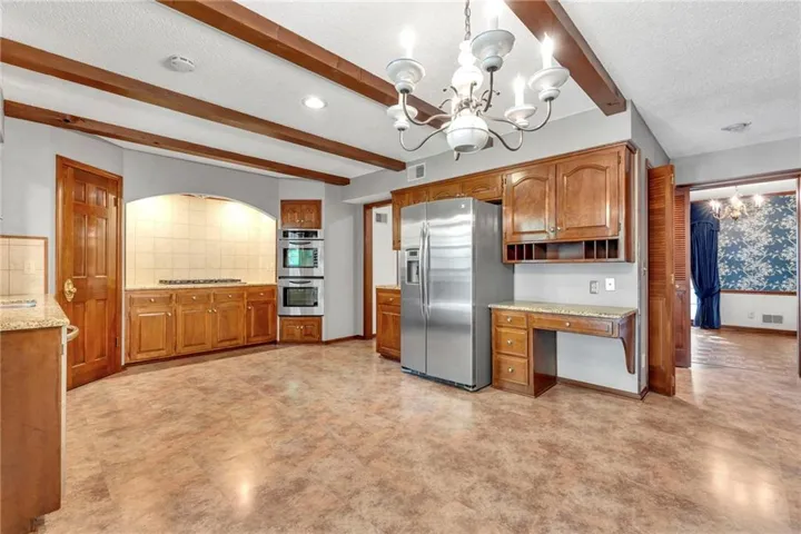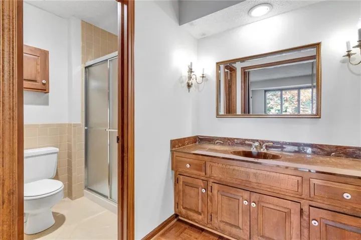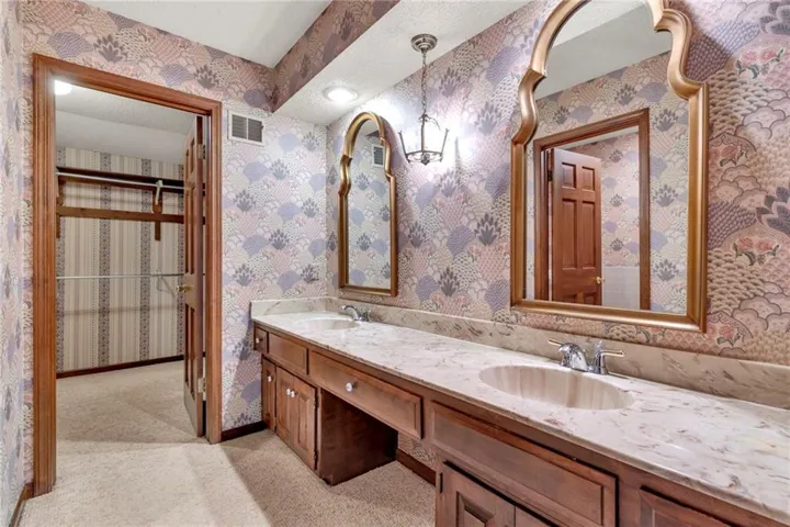 +"PublicRemarks": "Rare opportunity in Pinehurst Estates! Impeccably maintained one owner home with TWO primary suites! One is on the main floor and has hardwood floors, ensuite bathroom and a walk-in closet. The other is on the 2nd floor and has vaulted ceilings, double sink vanities, a walk in shower and separate tub and huge walk-in closet. This is a perfect setup for multi-generational living or an au pair. Grand in every way, you are welcomed by the palatial entry with sky high ceilings and marble flooring. The great room lives up to its name with soaring ceilings with wood beams, hardwood floors and floor to ceiling windows with french doors, leading you to the back deck. The eat-in kitchen has enough space for rolling island and full size table. It also features Viking gas cooking, double ovens and additonal sliding door access to the back yard and deck. The formal den with french doors is lovely with its hard woods and built-ins. It make for a wonderful library or home office. The oversized dining room is perfect for extra large dinner parties and entertaining. The finished lower level features a wrap around bar, workout room, bonus room and full bathroom. The sprawling back yard and deck is beautiful and serene with mature trees. Award winning Shawnee Mission schools, easy and quick freeway access and close proximity to lots of shops and dining."