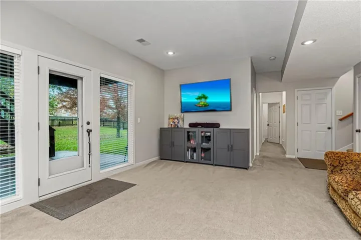 +"PublicRemarks": "Rare move-in ready FIVE bedroom, 3 bath, THREE car garage home in Liberty North with great curb appeal and an oversized storage room - for under $400,000! And the flat backyard is fenced! And it has a sprinkler system! Upon entering you will immediately be able to tell this is one of those rare homes where the owners took pride to always be updating and maintaining the home. The front room boasts luxurious carpet, a fireplace, natural light, and plenty of room for comfortable furniture. Enjoy a spacious kitchen and a convenient end-of-hallway laundry room close to the 3 main bedrooms. The freshly stained deck was enlarged by the owners and can fit an oversized table for gatherings. In the primary suite, note the dual vanity, walk-in closet, separate shower and bathtub. And don't miss the front bedroom's massive walk-in closet! On the lower level, the home features the third bathroom, two bonus bedrooms (the wall between them could be removed by the new owners if they prefer a larger 4th bedroom instead of 5 bedrooms), a second living room/rec room that walks out to the backyard patio, a surprisingly large sub-basement with bonus storage area (additional sq ft!), and an excellent 3-car garage that fits a boat! The roof was replaced in a hail claim a few years ago so it is newer than the home! The water heater is only 3 years young and the AC/heat pump is only 8 yrs old. You'll love the exterior paint, landscaping, backyard oasis, and overall signs of quality upkeeping as well as the interior quality paint and design. The home is the total package, a true gem."