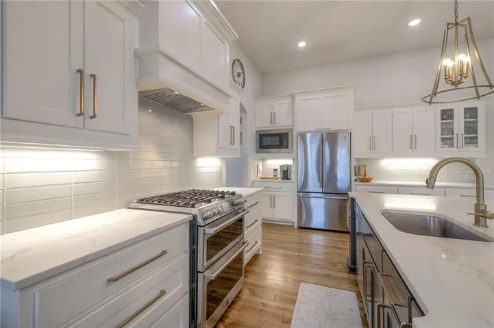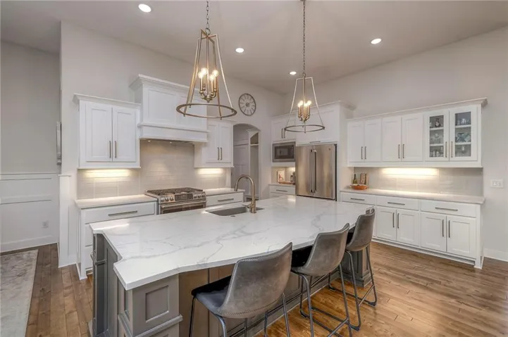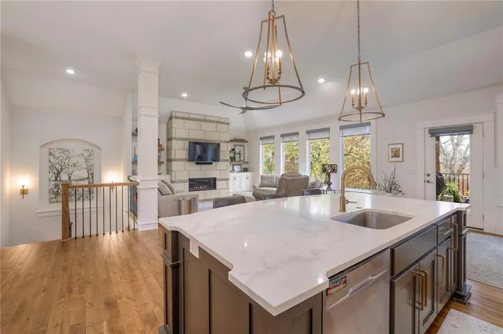 +"PublicRemarks": "This spacious home is beautiful both inside and out. It is located at the end of a Cul de sac and is nestled amongst a wooded backdrop that has been thoughtfully landscaped. Enjoy evenings by the fire on the Flagstone Patio surrounded by flowering shrubs and Native grasses. Relax and watch for wildlife on one of two roomy decks that extends your living space. Upon entering the "Open Concept" floorplan, you are met with a Wall of Windows bringing the outdoors in. your Kitchen will truly be the heart of your home. You'll appreciate the Custom Cabinetry and the large Island with Quarts Countertops is perfect for preparing food and Entertaining family and friends. The Finished Walkout Lower level and Bar plus two more bedrooms and bath provide plenty of space to both entertain and welcome friends and overnight guests. This "Like New" home has something for everyone!"