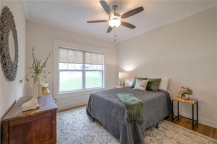 "LongDescription" => "Bedroom with carpet floors, ceiling fan, and crown molding"