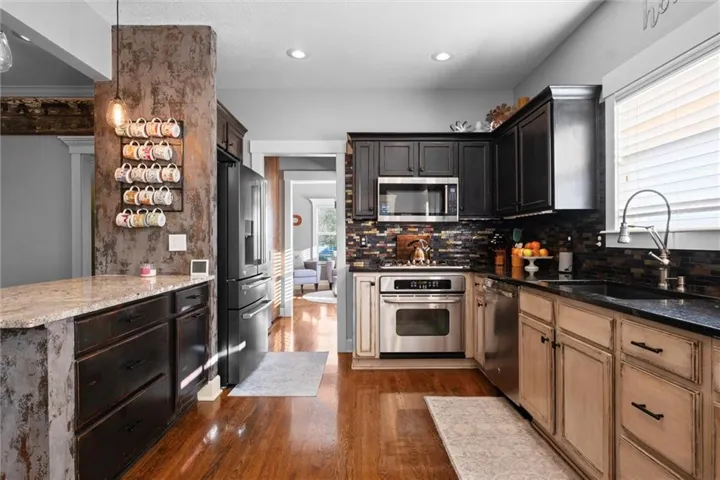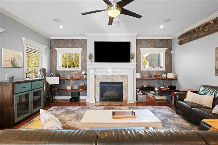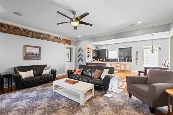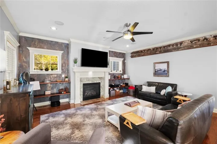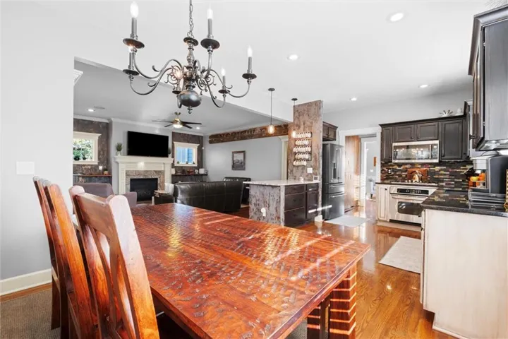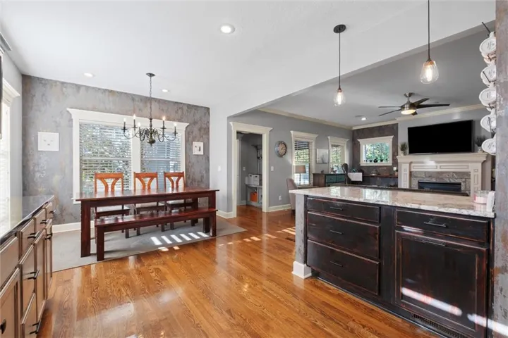 +"PublicRemarks": "Hard to find 1.5 story in desirable New Longview subdivision! Beautiful corner lot home, covered outdoor patio with built in grill and beautiful fire pit. Fenced yard for the kids and pets. Hardwoods throughout main floor, man cave with built in bar in the basement along with a workout room! The list keeps going! Extra parking pad out back, connected garage, eat in kitchen PLUS formal dining room that can be used for playroom, office, sitting room, etc. Neighborhood amenities include pool, playground, lake, historic pergola, greenspace, walking trails, and more!"