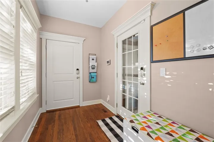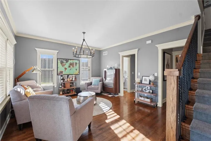 "LongDescription" => "Stairway featuring wooden walls, carpet, and wallpapered walls"