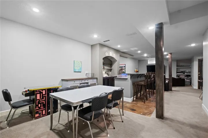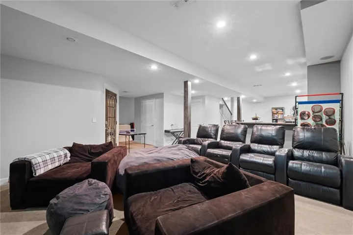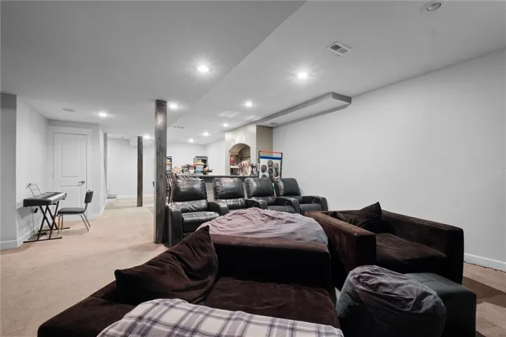"LongDescription" => "Finished below grade area with light carpet, wooden walls, and recessed lighting"
