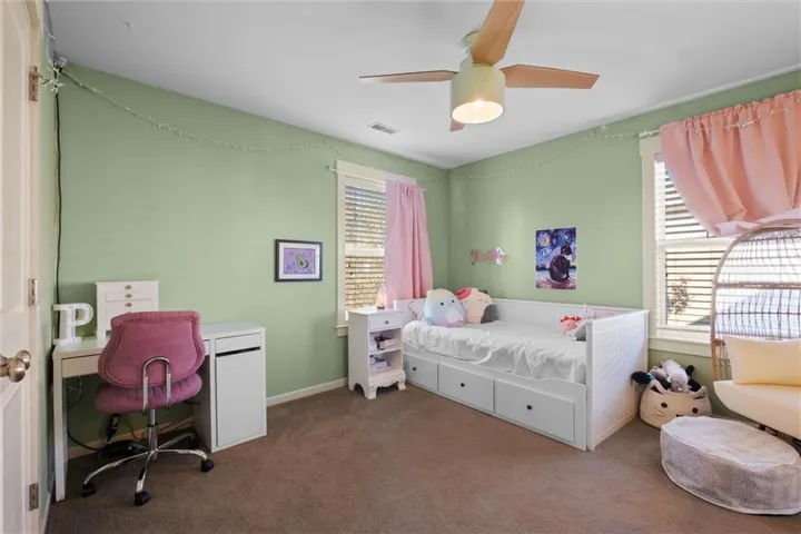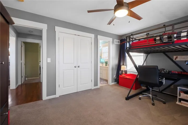 "LongDescription" => "Unfurnished bedroom featuring carpet flooring, a closet, a textured ceiling, and a ceiling fan"