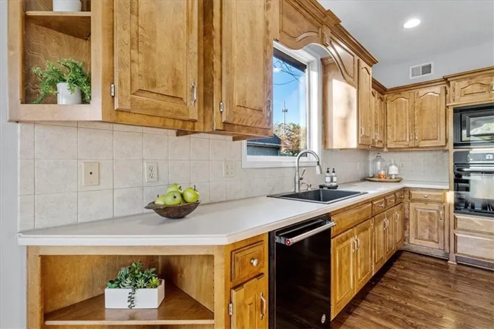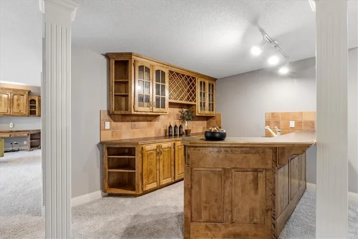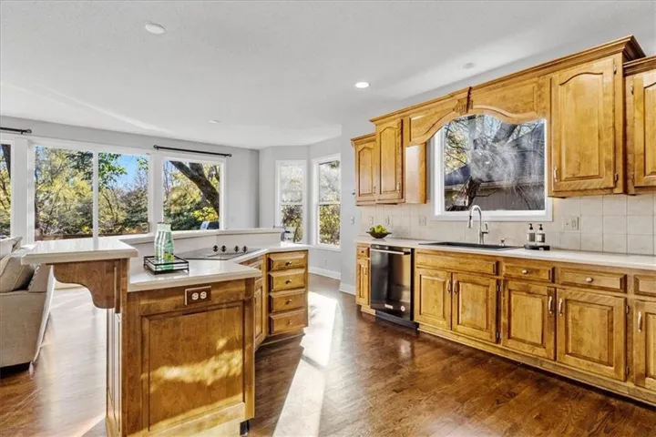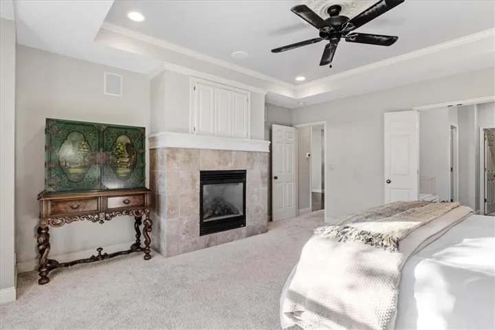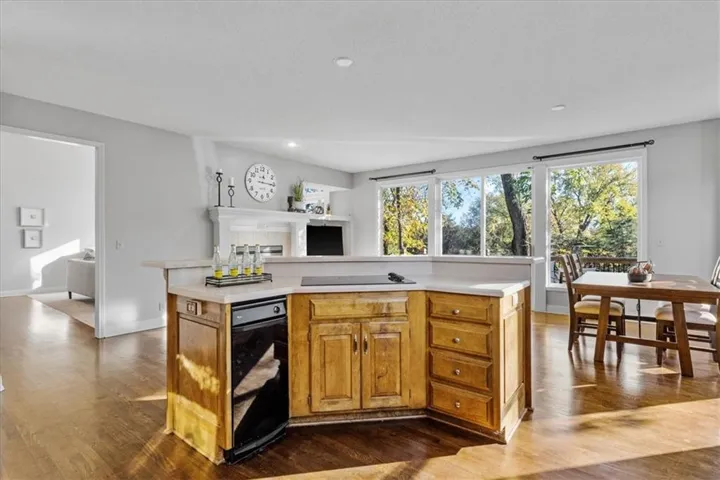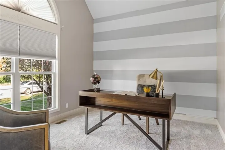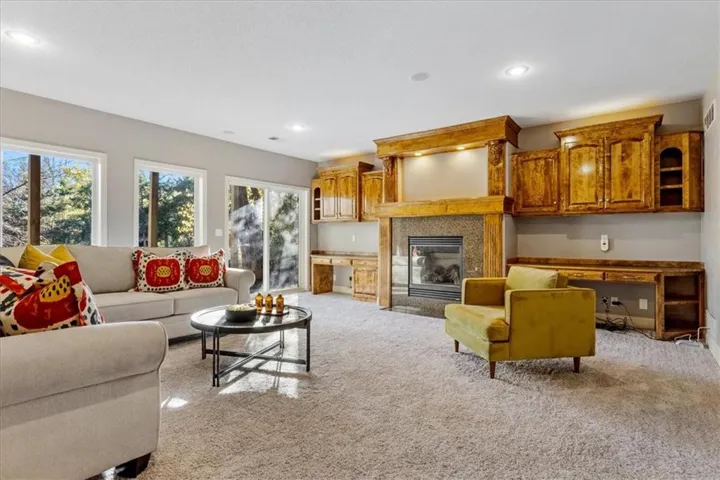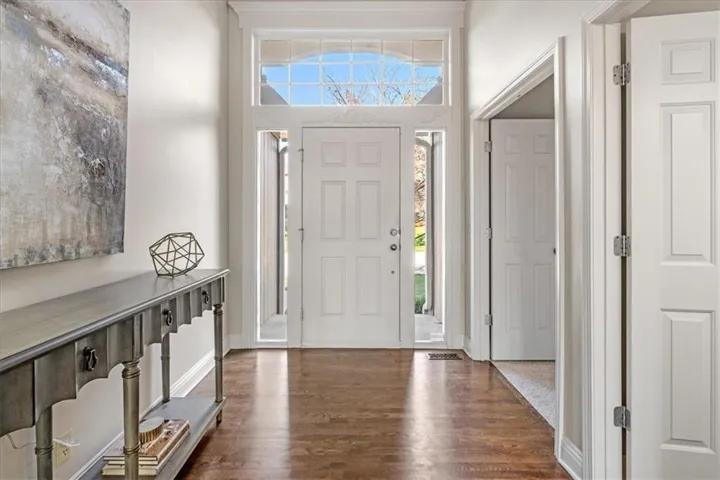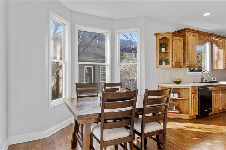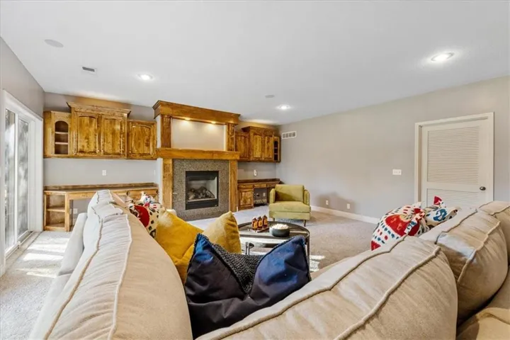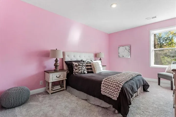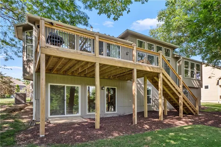 +"PublicRemarks": "Discover this stunning 4-bedroom, 4-bathroom home in the sought-after Huntington Place subdivision of Kansas City. Built in 2003 by Dusty Rhodes, this Reverse 1.5 story residence offers over 3,700 sq ft of meticulously maintained living space. Situated on a peaceful 1/4-acre lot, it backs up to a scenic 2-acre parcel with a pond, ensuring both privacy and beautiful views. The main floor welcomes you with a bright and open layout, featuring a spacious primary suite with vaulted ceilings, an electric fireplace, and a luxurious en-suite bathroom complete with dual vanities and a large walk-in closet. The chef’s kitchen is a standout with hardwood floors, stainless steel appliances, and a walk-in pantry, while the adjacent living room boasts a cozy fireplace and a wall of windows that overlook the serene pond. The finished lower level is perfect for entertaining or unwinding, offering additional bedrooms, 2 full baths, and a versatile living area with built-in desks, a fireplace, and walk-out access to the beautifully landscaped backyard. A dedicated gym/play area adds extra functionality, making this home ideal for both family living and hosting guests. Recent Updates include new hardwood floors and carpet (2017), new roof, windows, gutters, and exterior paint (2017), upgraded deck (2023), and new flooring in the primary bathroom, secondary main floor bathroom, laundry room, and lower-level bathroom (2024). Additionally, a new AC unit was installed in 2024 and includes a 5-year warranty. Meticulously maintained and move-in ready, this home combines modern elegance with a tranquil setting—perfect for those seeking comfort and style. Don’t miss the chance to make this exceptional property your own!"