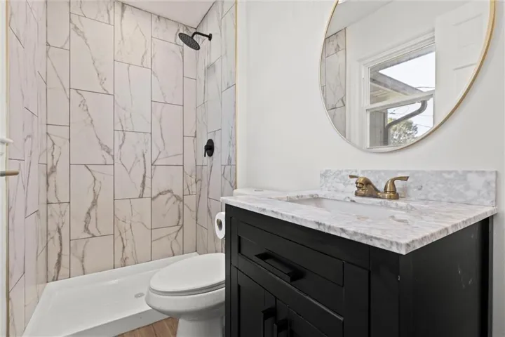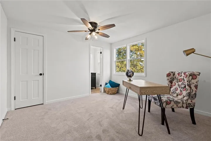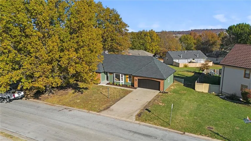 +"PublicRemarks": "Positioned on a picturesque tree-lined street on the outskirts of town, this authentic ranch-style residence showcases extensive renovations and modern conveniences. The fully remodeled property boasts a brand-new exterior, featuring a new roof, siding, expansive patio, garage door, and fresh exterior paint. Inside, discover four bedrooms (including a spacious fifth non-conforming bedroom), 3.5 bathrooms, and three living areas. The main level features hardwood flooring throughout the living and dining spaces, complemented by a striking wooden accent wall. The kitchen is equipped with sleek new cabinets, pantry, stone countertops, stainless appliances, and sliding glass doors leading to an expansive concrete patio perfect for entertaining. Additional highlights include a cozy living room fireplace and hardwood flooring in all main-level bedrooms. The primary suite features a walk-in shower, new tile floors, vanity, and fixtures, while the main hall bath boasts a complete renovation including tub, flooring, fixtures, and vanity. The upper level offers a generous bedroom with an en-suite half bath and walk-in closet. The lower level provides ample space for entertaining or family activities, complete with a large living area, full bathroom, and sizable non-conforming bedroom with closet. ** Please note the 2024 real estate tax amount is $3028.28 per Jackson County tax bill"