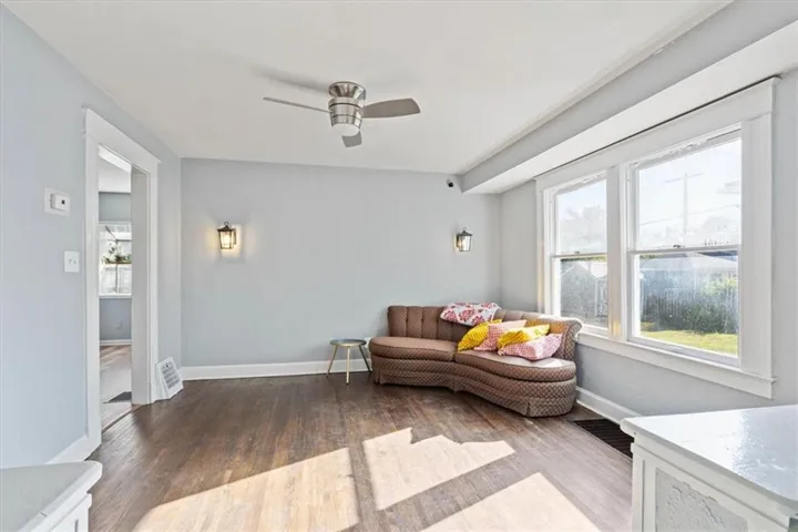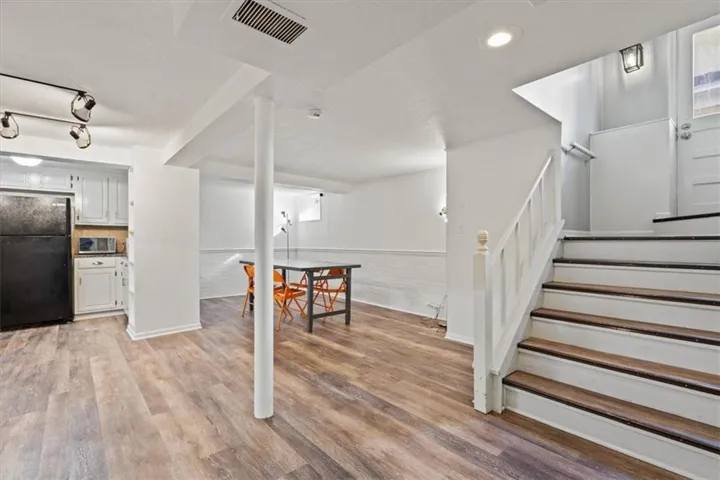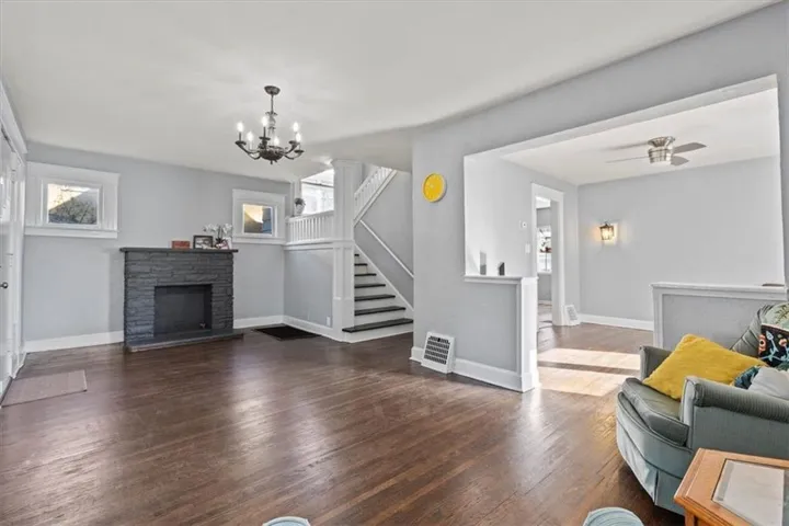 +"PublicRemarks": "HISTORIC DISTRICT | SPACIOUS | KC SHIRTWAIST| UPDATED| 4BED 2.5BATH - Located in the heart of Kansas City's Historic Northeast/Indian Mound District, your new home awaits. This class Kansas City Shirtwaist-style home resides on a street named after the renowned KC architect Henry Van Brunt, and has been well-maintained by generations of owners over the years. The first thing you notice when you walk in the home is the gleaming refinished hardwood floors and stairs throughout the home, and the natural light spilling in from each window. The home is spacious with two large living rooms. The home office is also on the main floor and includes a greenhouse window perfect for indoor gardeners. The den with attached 1/2 bath can be finished easily and made into a 5th bedroom. The 2nd level has a sprawling primary bedroom with his/her closets, huge secondary bedrooms, each with a double wall of windows, and they share a remodeled bathroom with a double vanity, shower-over-tub, and natural stone tile floor. Built-in shelving for linens in the hall. On the 3rd level we have the freshly painted dormer bedroom and massive walk-in closets. The basement has been finished from wall to wall and top to bottom with fresh paint, LVP flooring. Kitchen has custom cabinets with plentiful space, travertine tiled backsplash, electric range, pantry with pull-out shelving, and granite countertops. Dining room has elegant wainscoting, newer light fixture, and fresh paint. Utility room has a plethora of storage, painted flooring, and walks out to covered patio. Home has a huge deck overlooking the yard, shared driveway, partial fence, and NEW LANDSCAPING in front. Cove alarm system w/ monitoring service installed The security system, sensors, cameras, and blink doorbell all stay! As well as the Fridge/Washer/Dryer!"
