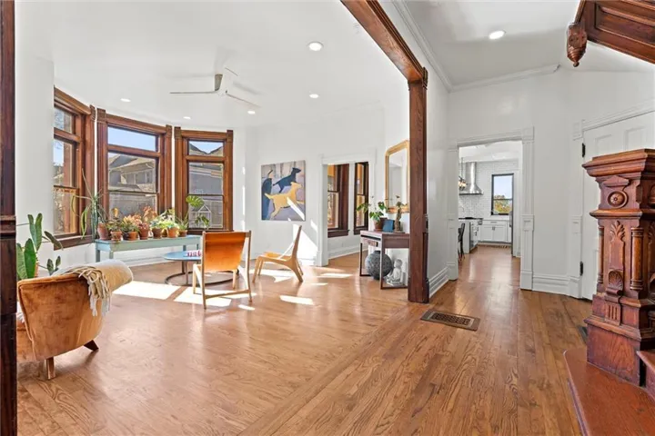 +"PublicRemarks": "Step into a beautiful 130-year-old Victorian masterpiece in the heart of Hyde Park, where historic charm meets modern convenience. Built in 1890, this home boasts original hardwood floors, a stunning custom staircase, and an airy main floor with tall ceilings and bay windows. The updated kitchen features stainless steel appliances, quartz countertops, and a large island perfect for entertaining. Outdoor spaces include expansive porches, a third-story deck, and a double corner lot with ample parking. The luxurious master suite offers a spa-like bath with a copper soaking tub, while the top floor’s separate suite, complete with its own kitchen and entrance, is perfect for an Airbnb or guest space. Modern upgrades like solar panels, new HVAC, an electric car charger, and smart home features blend seamlessly with the home’s historic character, making this Hyde Park gem a truly unique find."