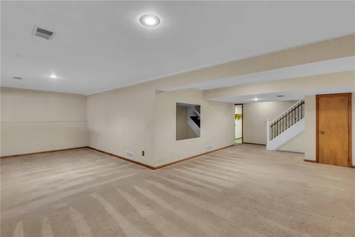 +"PublicRemarks": "Welcome to Colchester Court! This home features a MAIN LEVEL primary suite complete with a cozy sitting room, ideal for relaxation. Enjoy a custom kitchen designed to meet all your culinary needs and an abundance of storage throughout. Upstairs are two additional bedrooms and a full bathroom. The spacious finished basement includes a large family room, a non-conforming 4th bedroom, an additional bathroom, and extra storage space. Step outside to enjoy the large deck overlooking a fenced yard—perfect for entertaining or relaxing. Laundry hookups are available in the master bathroom as well as in the basement, giving you options! The two-car garage includes a ramp for added accessibility. Ideally located near I-35, with easy access to restaurants, parks, and shopping. Home is being sold As-Is. Don't miss out on this perfect blend of convenience and comfort! Seller is offering $5000 FLOORING ALLOWANCE for the basement carpet."