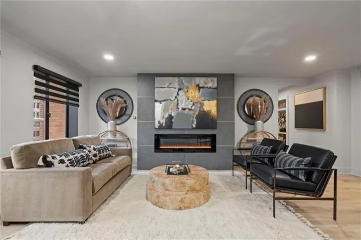 Step into luxurious living in the heart of the Country Club Plaza with this beautifully renovated 1-bedroom, 1-bathroom condo offering modern touches and upgrades and plaza views. With thoughtful finishes throughout, this home combines timeless style and sophistication with stainless steel appliances, white oak hardwood floors, an oversized custom built fireplace to anchor your space and perfect for entertaining, and ample closet space. The entire unit has been renovated elegantly from top to bottom.\r\n