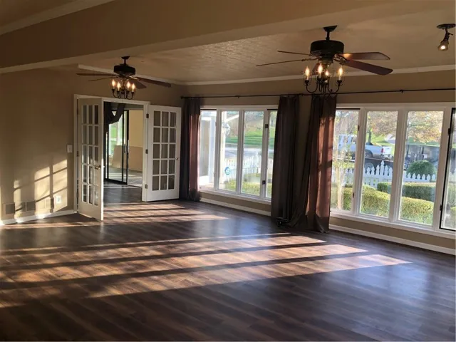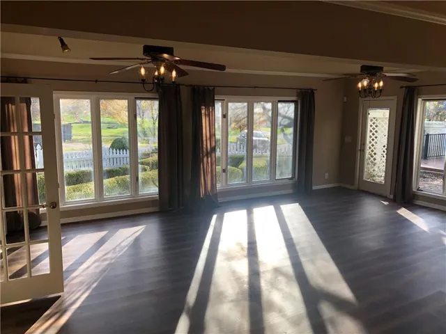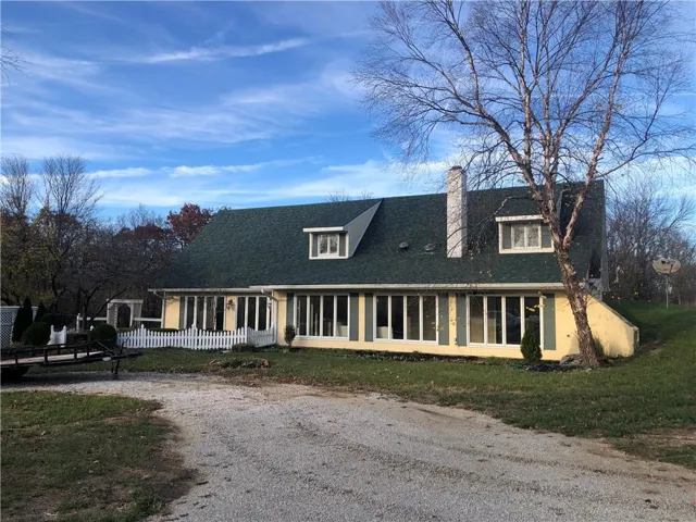Beautifully charming country home on 2.4 acres SE of Peculiar, Mo. Peaceful tranquility abounds! Open the front door to an expansive cozy sunroom. Perfect for relaxing or growing plants! The main floor includes a newly remodeled custom kitchen with new appliances and long center island. The main place to gather is the large Great Room (20 x23) with additional gas fireplace and floor to ceiling windows! All through the main level are new Luxury vinyl plank floors including the Great Room, Dining Room and kitchen. New carpeting in the primary first floor Bed and Bath. Dining room includes a wood burning fireplace. Upstairs you will find two more bedrooms and a full hall bath with a spacious balcony area. But wait... there is more, an upstairs side entrance/deck takes you to a expansive unfinished room (bonus) that can be remodeled into a man cave, craft room or a family game room or usable square footage for a bonus bedroom w/ bath. This area is also accessible through bedroom #3. \r\n