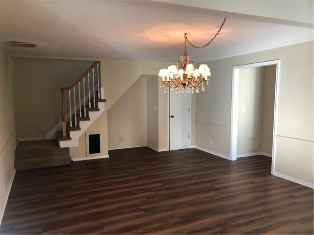 An area between the living and dining spaces shows visible floor separation/elevation, potentially related to joist/framing conditions. Home is being sold in present condition. Buyer to perform all desired inspections and due diligence.