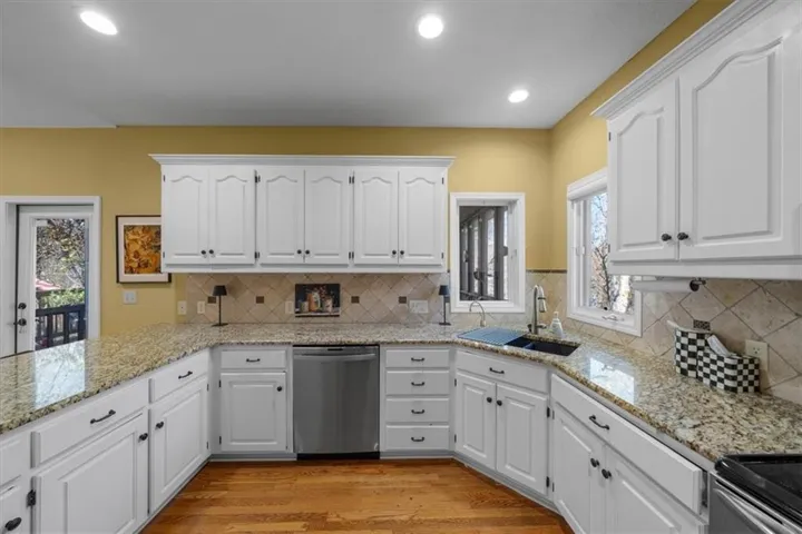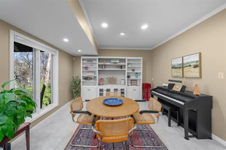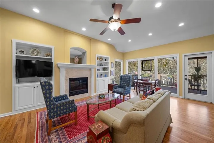 +"PublicRemarks": "Located in the desirable Timber Trace community, this free-standing, maintenance-provided home offers a perfect blend of one-level living with plenty of space for family gatherings. The main level features an elegant living and dining area with plantation shutters and a see-through vented gas log fireplace (inspected yearly) connecting to the hearth room and kitchen, creating a warm, inviting environment. Walk in pantry and a main-level laundry room add to the ease of everyday living. Enjoy tree top views from the screen porch or outside deck right off the kitchen. The spacious primary suite features a newly renovated bathroom and walk in closet. The inviting lower level is designed for relaxation and entertainment, with a large family room ideal for movie or game nights and new fireplace with ventless insert. It also includes two additional bedrooms with a Jack-and-Jill bath, plus a versatile daylight bonus room currently used as an extra bedroom. High ceilings and large windows on both levels offer tree-top views and fill the home with an abundance of natural light. Wonderful subdivision minutes from shopping, dining, parks and the Blue Hills Country Club. HOA covers lawn care, snow removal, sprinkler system and trash."