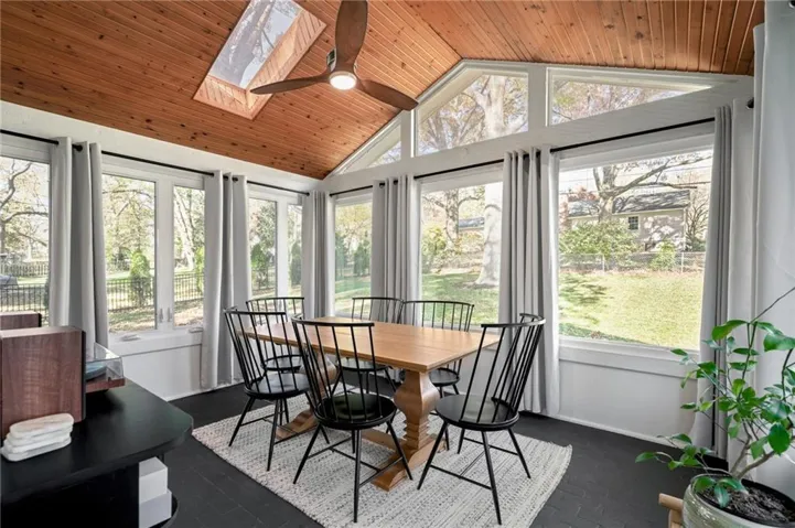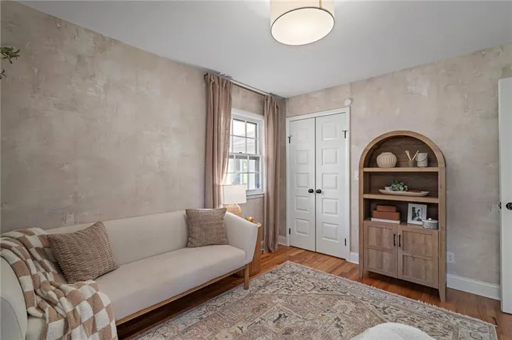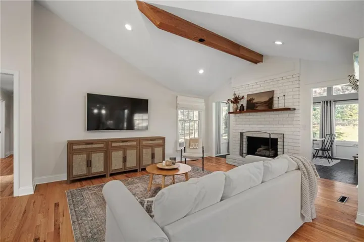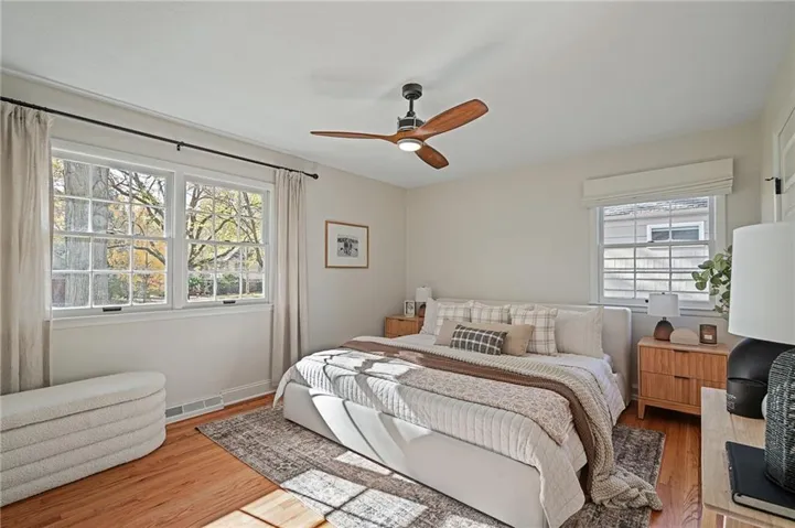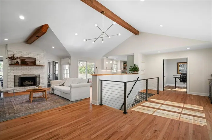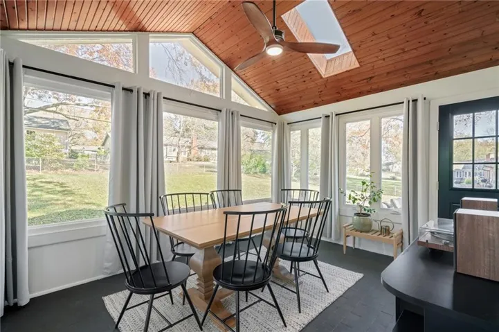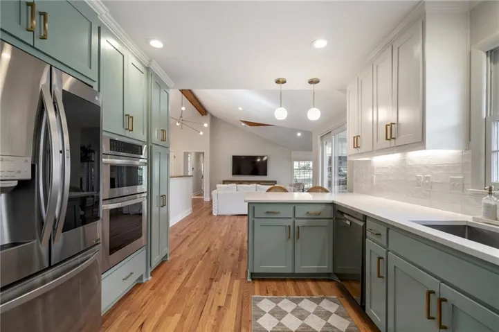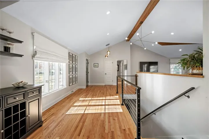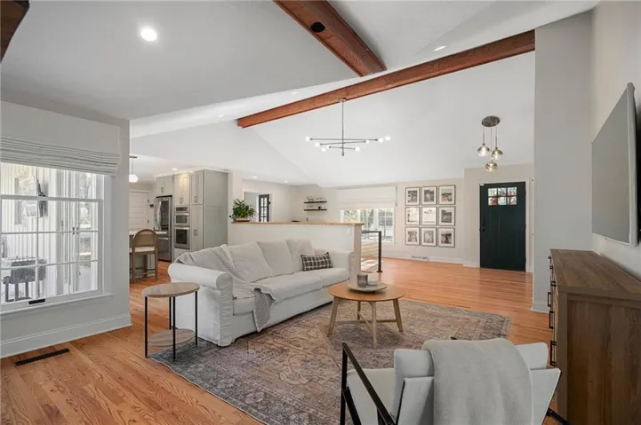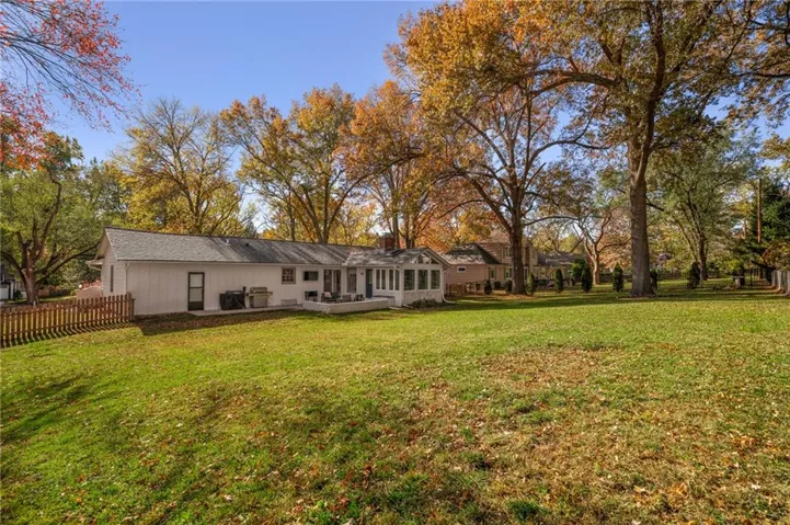 +"PublicRemarks": "It’s time for you to move to the heart of Leawood, KS! ~ be HOME for the holidays in this remarkable ranch ~ conveniently located at 104th & Lee Blvd, experience luxury living in Leawood Estates!! ~ enjoy your drive down the peaceful tree-lined quiet street ~~ but once you arrive, be ready to sip your cup of coffee on the back 4-seasons sun room! *tons of windows/natural light* Open vaulted ceilings w/ unique architectural beams greet you right when you walk in the door >> shiny hardwoods throughout the main level! Open space for formal dining + bonus home office on the main level. Cozy living room w/ gas/wood-burning fireplace opens up to the sunny breakfast room. Stunning kitchen is complete w/ quartz countertops, gold handles, stainless appliances, designer tile backsplash & floating shelves! don't miss the neatly organized pantry by the spacious 2 car garage. 3 bedrooms on the main level including huge primary bedroom w/ designer ensuite bathroom. Double vanity & quartz counters in the bathrooms! head on down to the finished basement w/ tv room/bar area/workout room & 4th bedroom/3rd full bath ~ new light fixtures throughout! ~ radon system & security system ~ treed private backyard with a fence & patio for BBQs ~ walk to the nearby elementary school & parks >> just a few minutes from Mission Farms & easy highway connections. All the work is done here, just move right in!"