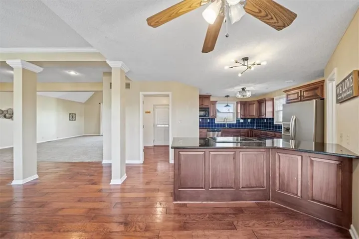 +"PublicRemarks": "Come explore the award-winning Shea II Ranch by DCB Homes! This 4-bedroom, 3-bath beauty features a striking new front porch elevation and an inviting open layout designed for modern living. The main level impresses with a vaulted ceiling spanning the Great Room and Kitchen, creating a bright, airy feel. The kitchen offers abundant cabinetry, a large island, built-in appliances with a gas range, and a walk-in pantry. A spacious dining area is a buyer favorite that opens to the back deck—perfect for entertaining. The primary suite features a walk-in shower, freestanding tub, double vanities, and a generous walk-in closet. Two additional bedrooms and a full hall bath are conveniently located on the opposite side of the main level, along with a laundry attached to the Primary and mudroom. The finished Lower Level includes a large rec room with bar, fourth bedroom, third full bath, and two large storage areas. A 3-car garage completes this fantastic plan. **This home is at the PRE-CONSTRUCTION phase. Photos are of a similar home. Taxes are estimated.** Lakeview Ridge is a new build community just west of Lake Olathe with great homes started and fantastic lots available. POOL coming in 2027. You can get to the neighborhood off of Dennis & Houston with easy access from K7 or coming from Lakeshore. Our Sales Office is located 14271 Houston. Our development is right next to Lake Olathe and neighborhood feeds into Clearwater Creek Elementary, Oregon Trail Middle School and Olathe West High School."