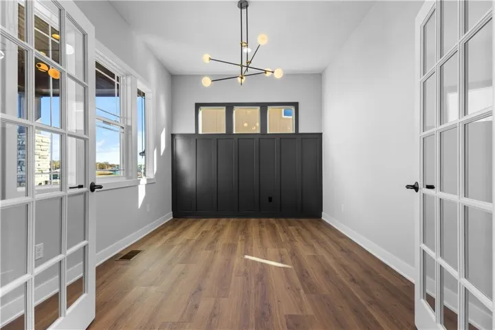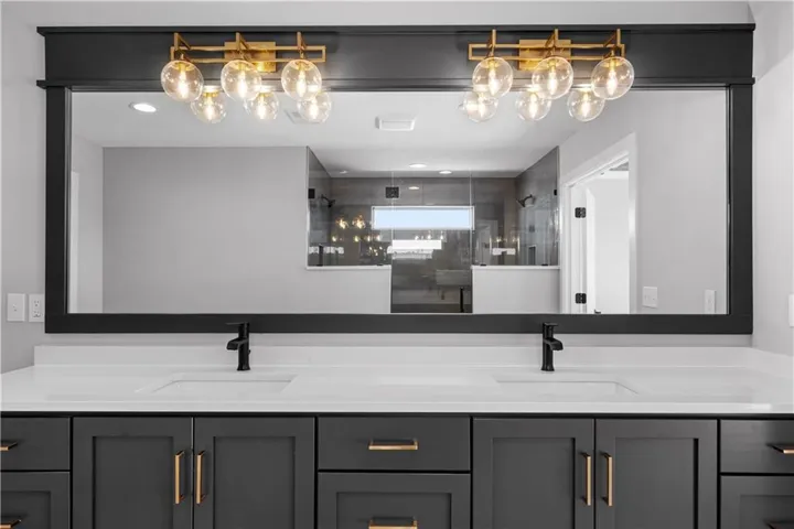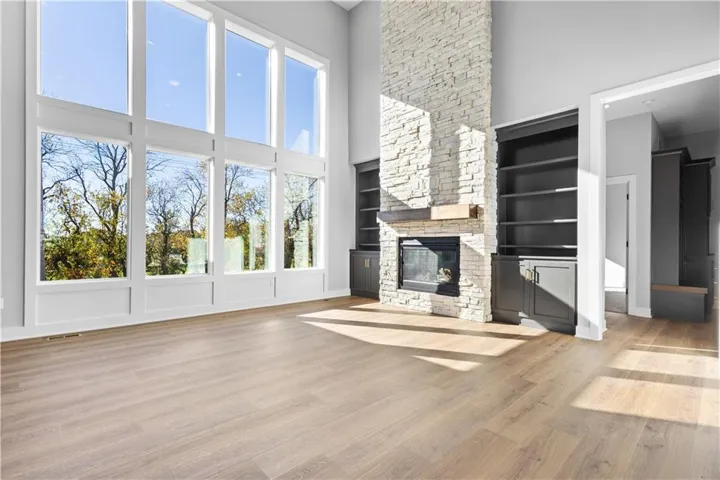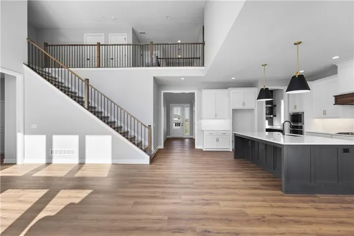 +"PublicRemarks": "The Contemporary "Opus II" Floor Plan in the popular Thousand Oaks subdivision, boasts 10-foot ceilings on the main floor, top-tier appliances paired with upgraded quartz countertops, a prep kitchen and pantry in the gourmet kitchen. The design also includes French doors that lead into the office. Additional highlights feature a two story Stone Fireplace, an under-cabinet lighting package, a modern trim package, wainscoting in the foyer, a coffered/stained edge tray ceiling in the primary bedroom, a drop zone with a boot bench, built-in cabinets with floating shelves in the living room, a spa bath free-standing tub in the master bath, plus a 4 ft garage extension. The walk-out basement leads out to a covered deck that's perfect for entertaining. The overall aesthetic is modern and sleek with the eye-catching black windows and contemporary garage doors. **Still time to have a Design Review and select colors!"