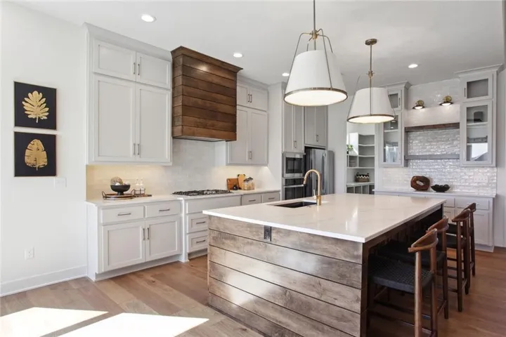 +"PublicRemarks": "The Windsor Contemporary Floor Plan begins with a Grand entry w/8’ Doors and continues on to 12’ ceilings in the great room and a modern tile fireplace w/ built-ins. Custom sized windows allowing abundant natural lighting throughout the 10 foot ceilings the main floor. Kitchen features a oversized island, upgraded Quartz counters & HUGE pantry that can be customized when building for counterspace and windows! Primary suite w/ stained edge tray ceiling and spa bath w/ freestanding tub & pull down rods in closet. Lower level walkout w/ wet bar and fireplace. Overside garage! Maple cabinets and many trim and tile upgrades throughout. **Still time to have a Design Review and select colors!"