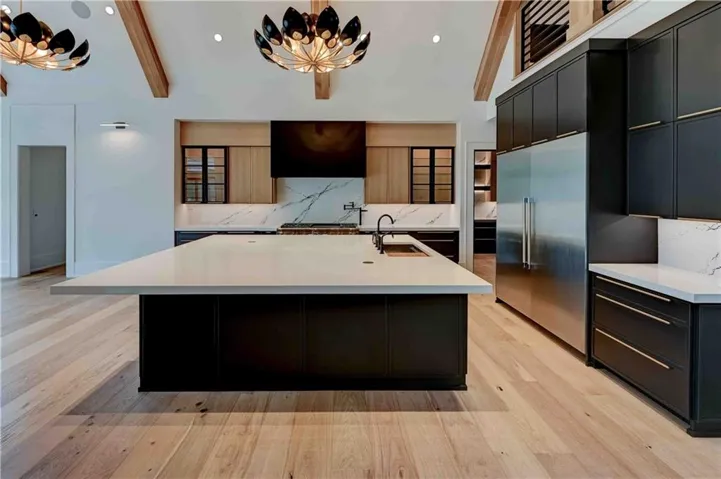 +"PublicRemarks": "Welcome Home to this Luxurious New Construction! Just completed & landscaped! This remarkable find sits on over an acre of property! Modern Farmhouse w/beautiful high-end touches at every corner! The perfect Leawood location, this fabulous residence features 6 beds/6 bath & (2) half baths. The perfect open main floor/lots of glass lifestyle w/trophy kitchen featuring a 10x10 kitchen island, custom cabinets w/high end appliances. WOW caterer's kitchen to make special events easy! Owner's suite is a statement w/accent wall & walls of glass overlooking the magical outdoor lifestyle. Master bath showcases eye-popping (2) floating vanities, striking oversize shower w/striking back slab wall focal panel. his/her water closets. high finishes continue to lead into the master closet w/customer-built cabinetry. Main flr secondary bedroom/office w/ private bath. Marble treads lead you up to the upstairs leads into the perfect fun loft space for the kids hang out area. All other up (4) bedroom suites are oversized w/private baths & closets. 2nd floor laundry location, WOW outdoor retreat flaunts 63'x25 gunite swimming pool, 7x7 spa & firepit. use condition pool pavilion for bathroom access & out of the sun relaxation Built BBQ station off the great room near the pool for a fun summer grill out. Home Automation is featured thru a Control 4 system for lighting, security, televisions and in house audio. Large unfinished basement w/9' tall walls, daylight windows & stubbed for the perfect opportunity to finish out additional flex space. This a rare opportunity combination of new construction, prime location, acreage and private setting. One of a kind lifestyle ... IF YOU HAVE BUYERS AT THIS LEVEL, THIS IS A MUST-SEE RESIDENCE! PICTURES CANNOT CAPTURE THE BEAUTY OF THIS RESIDENCE!"