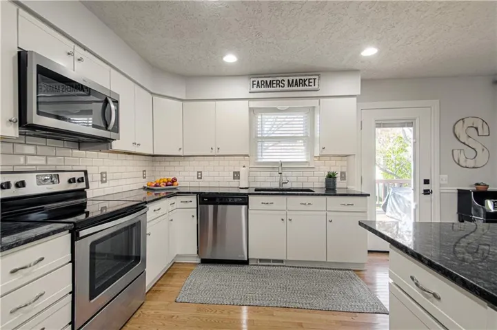 +"PublicRemarks": "Location Location Location, Close to everything Lenexa has to offer! This delightful 3 bed 2.5 bath front to back split offers vaulted ceilings with tons of natural light fresh paint, and tons of upgrades throughout. Once you step in this home you will feel the open floorplan and notice the updates. The Updated and open kitchen has granite, SS appliances oversized island and hardwoods. Large master with updated bathroom. Kids bedrooms have plenty of space and modern details. Lots of Xtra living space to spread out. Walkout if the kitchen to the deck overlooking a large treed fenced in backyard. Don't forget to checkout the garage with attached shed for all your storage needs. This house is clean, well maintained and ready for its new owner!"