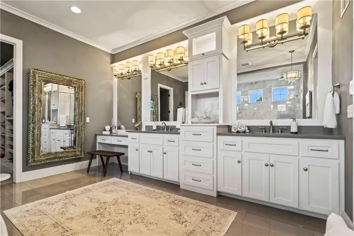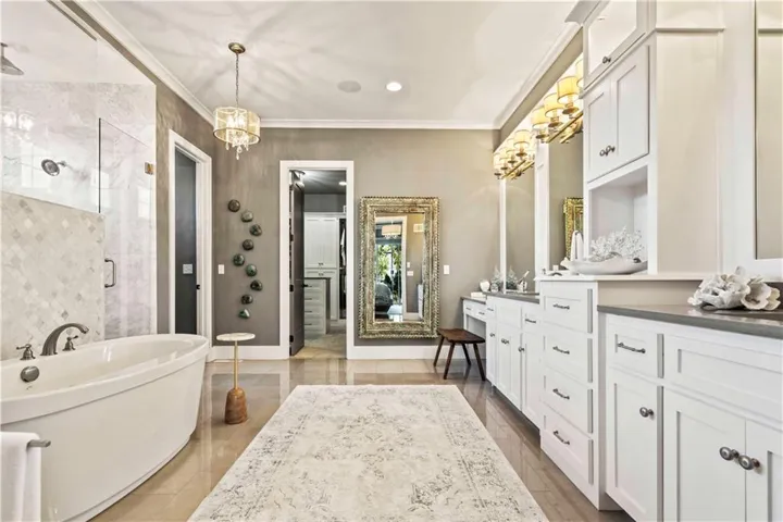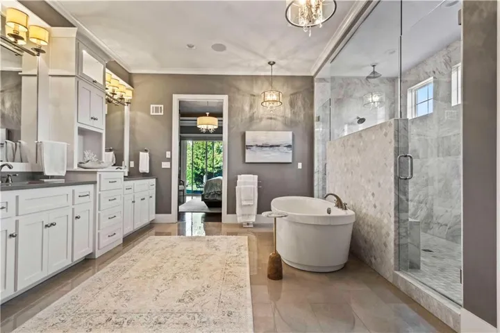 Upstairs, 4 bedrooms each have private baths and walk-in closets. The walkout lower level features a full bar, glass-enclosed wine room, home theater, bedroom, and full bath.\r\n
