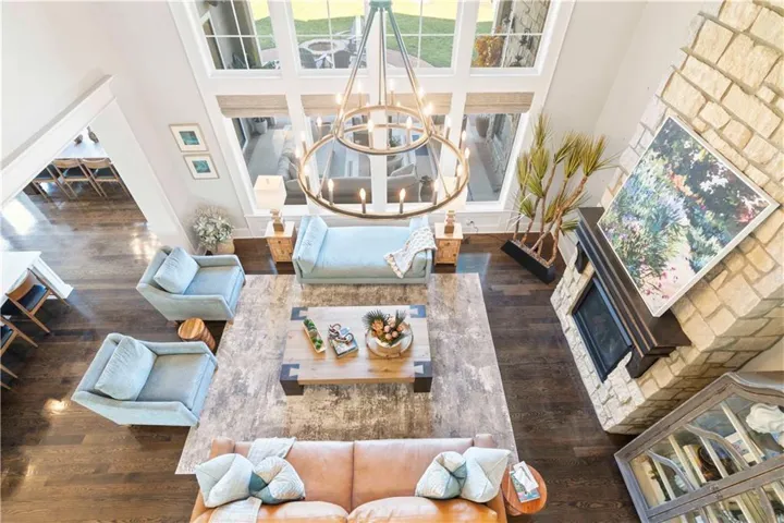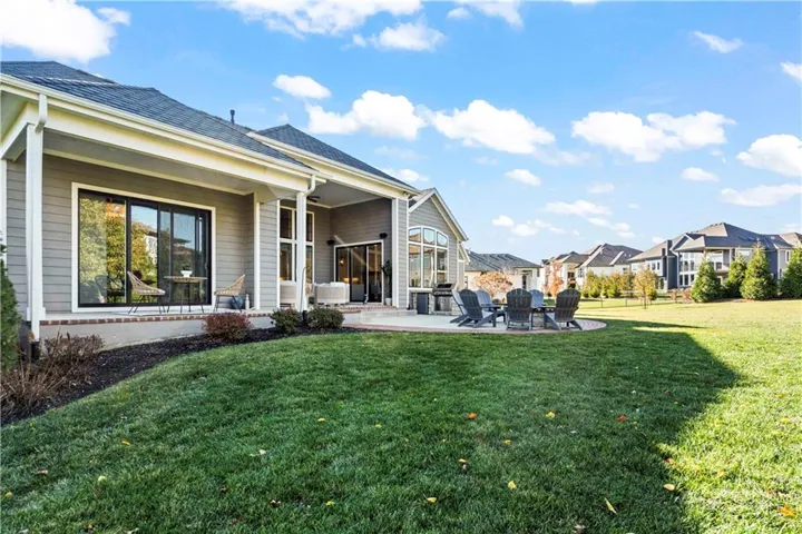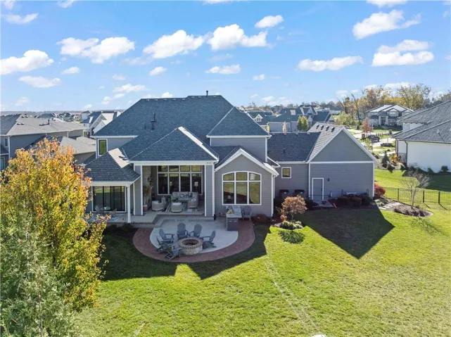 The fenced backyard is a personal oasis with lush landscaping, an extended patio, a lanai with a fireplace, a built-in grill, and a firepit. Terrybrook Farms has fabulous amenities including a Pool, Clubhouse, Fitness Room, Sport Court, and Playground, and the home is in the nationally recognized, award-winning Blue Valley School District.