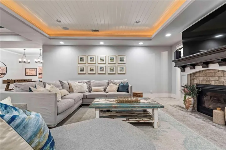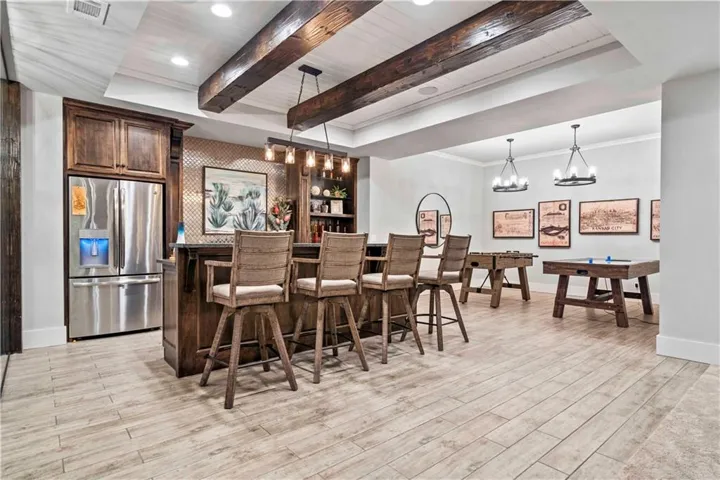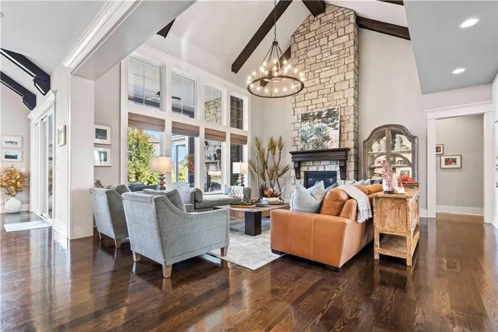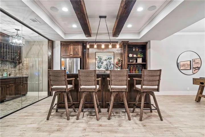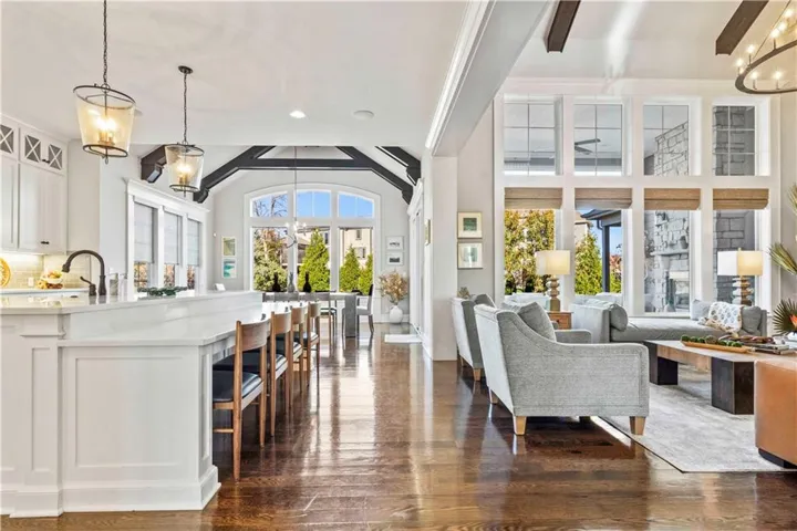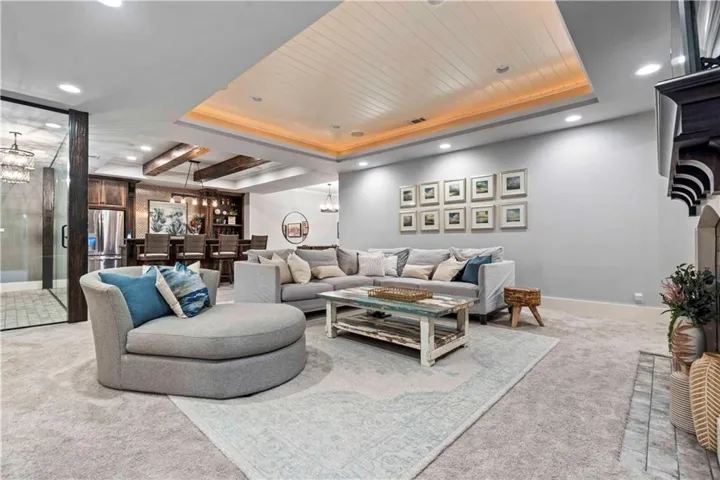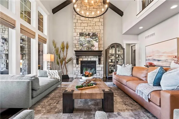 The main-level primary suite is a private retreat with private patio, a spa-like bath, a large walk-in shower, and a custom closet. A second main-level bedroom doubles as a home office. The two-story great room boasts exposed beams, a striking fireplace, and seamless flow into the chef’s kitchen, which includes a Thermador 8-burner range, oversized fridge, dual dishwashers, a prep kitchen, and a walk-in pantry.\r\n