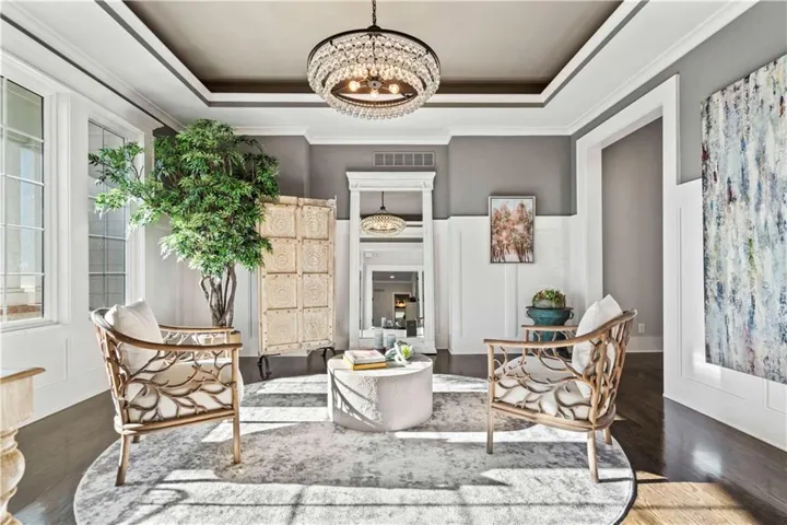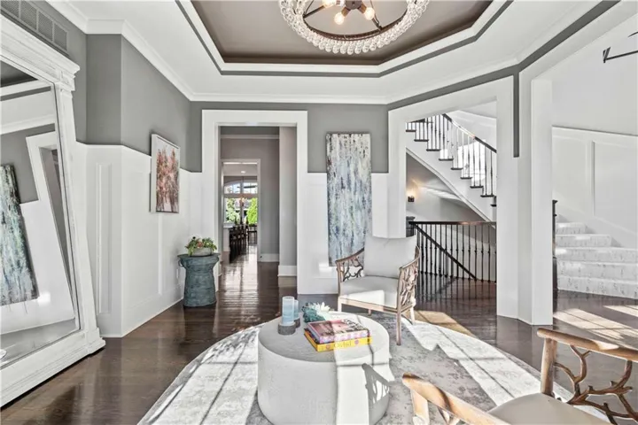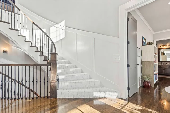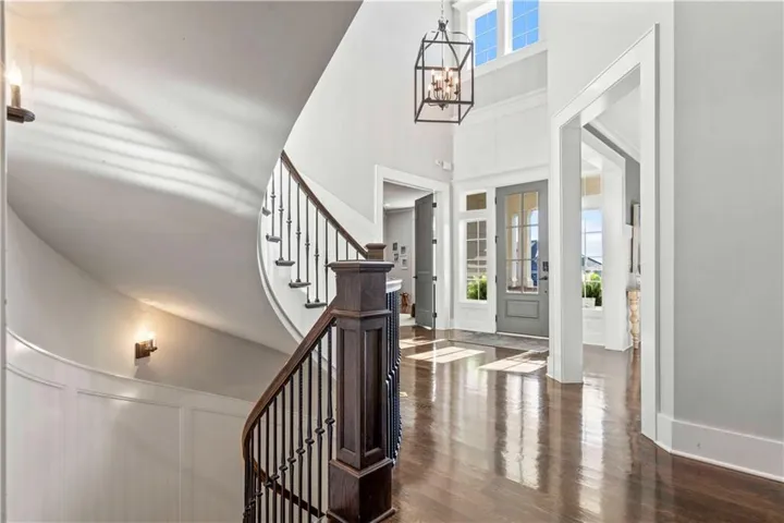 This stunning former model home by James Engle sits on a 3/4-acre cul-de-sac lot, offering over 7,500 square feet of luxury and comfort. With 7 true bedrooms, it’s perfect for families and entertaining. The impressive entry features a charming brick porch and a two-story foyer with a curved staircase.\r\n