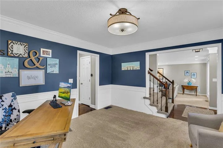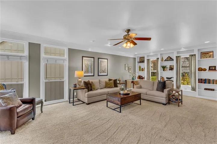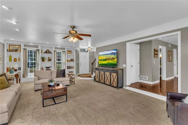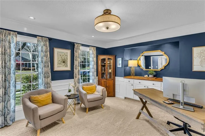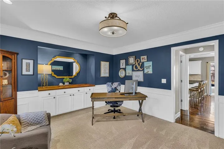 • Custom crown molding and built-in cabinets, adding character and elegance to the living spaces and office/dining room. (Make this flex space work for you!) \r\n