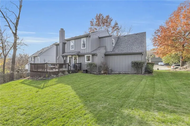 "LongDescription" => "Rear view of house featuring a deck and a lawn"